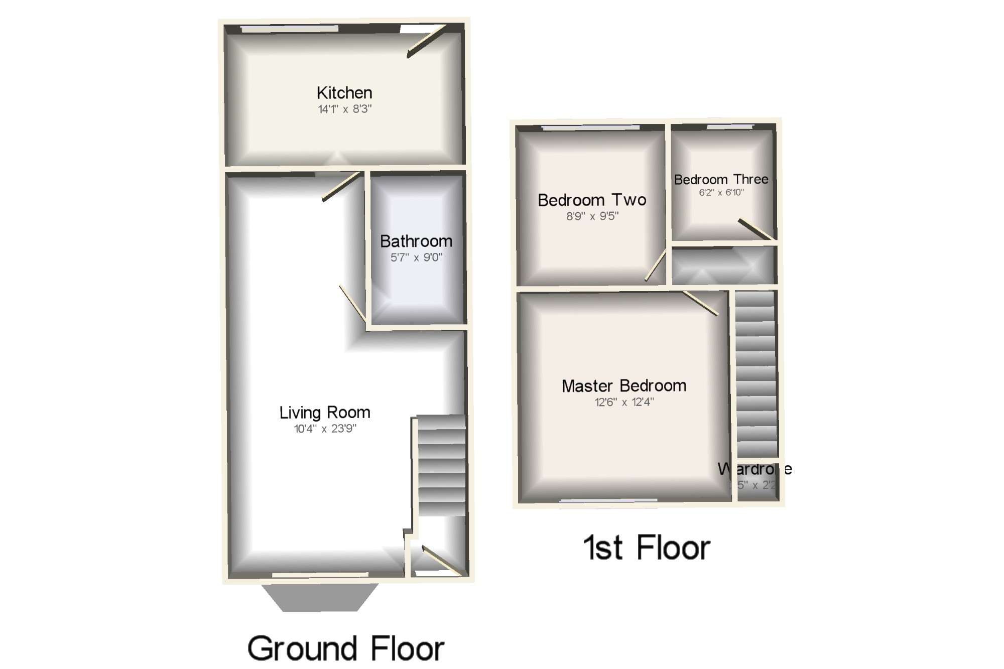 Living Room 10'4" x 23'9" (3.15m x 7.24m). Double glazed uPVC bay window facing the front. Radiator and gas fire, laminate flooring, painted plaster ceiling, ceiling light.