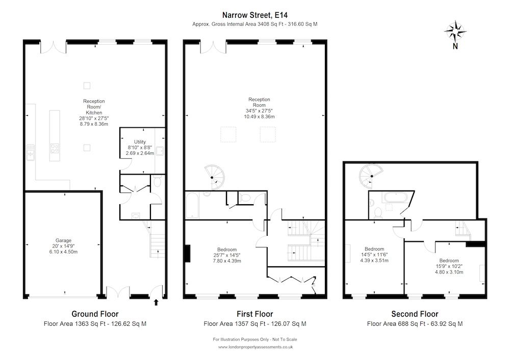 Cavernous accommodation approaching 3500 sq ft sprawls across three floors at the street frontage and two at the Thames frontage. The vaulted top floor adjacent to the river really is the most incredible space, the authenticity is evident everywhere and really doesn't need to be messed about with too much. To take all this space in, just head up the stairs and head on to the galleried mezzanine/office. On this top floor, there are also a further two double bedrooms and a bathroom. Back on the living room level, the master suite with dressing area and bathroom can be found.