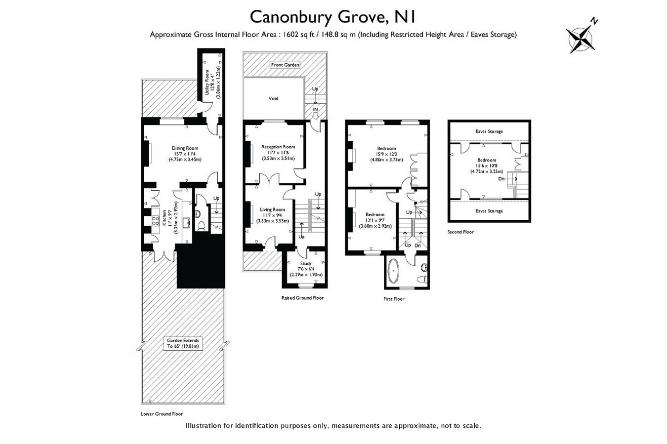 Canonbury Grove is a quiet residential street within a short walk of the shops and restaurants on Upper Street. It has outstanding transport links: Highbury & Islington provides quick access to the West End via the Victoria Line, Essex Road station is two stops from the City at Moorgate, and Canonbury station offers direct services to Canada Water. Opposite the house is the New River, a tranquil man-made waterway with mature trees that provides lovely walks. Nearby Highbury Fields has large areas of open space, as well as tennis courts, a playground and a swimming pool.