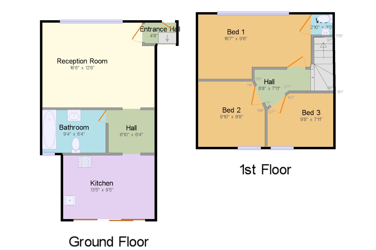 Bedroom One16'7" x 9'6" (5.05m x 2.9m). Double glazed uPVC window facing the front, radiator, laminate flooring.