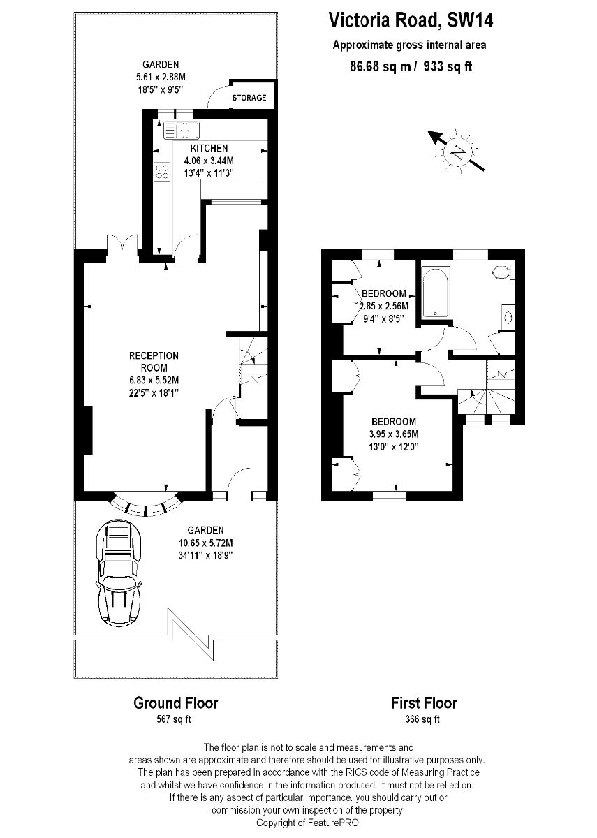 Approached via a front garden incorporating parking for one vehicle, accommodation to the ground floor comprises a stunning near four hundred square foot double-reception, and a fitted kitchen with a generous range of base and eye-level units. The reception enjoys French doors opening out on a pretty rear garden, with more than enough space for a bbq and al fresco dining in the warmer months. Upstairs are located a generous master bedroom with built-in wardrobes, a second bedroom also with integrated storage and a large 'family size' bathroom.
