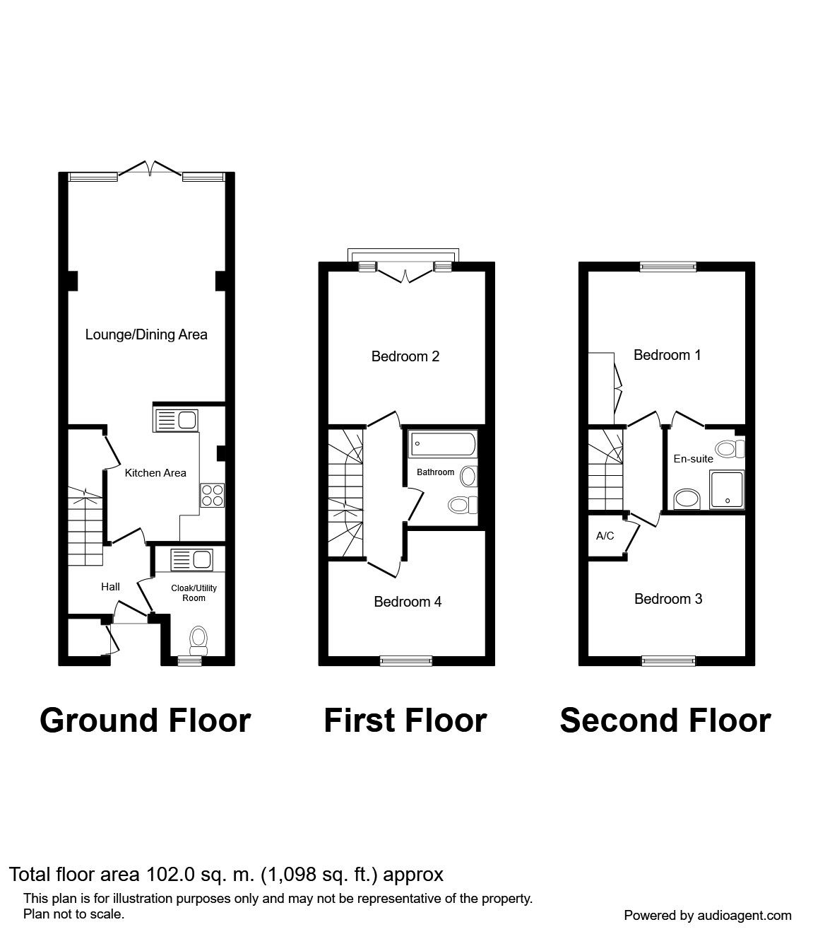 Modern and stylish for this town house currently using as a four bedrooms. On the ground floor there is a separate utility room with down stairs WC. The open plan kitchen dinner has a modern fitted kitchen with breakfast bar and fitted appliances lounge area and dining area overlooking the garden. To the first floor is a bedroom (formerly the lounge) with Jubilee balcony and a further bedroom. The family bathroom comprises of a three piece suite To the second floor is the master bedroom with built in storage cupboard and refitted en suite. There is a further bedroom to the front. The low maintenance garden is enclosed by timber fencing. Off road parking for two cars to the front. EPC awaited.