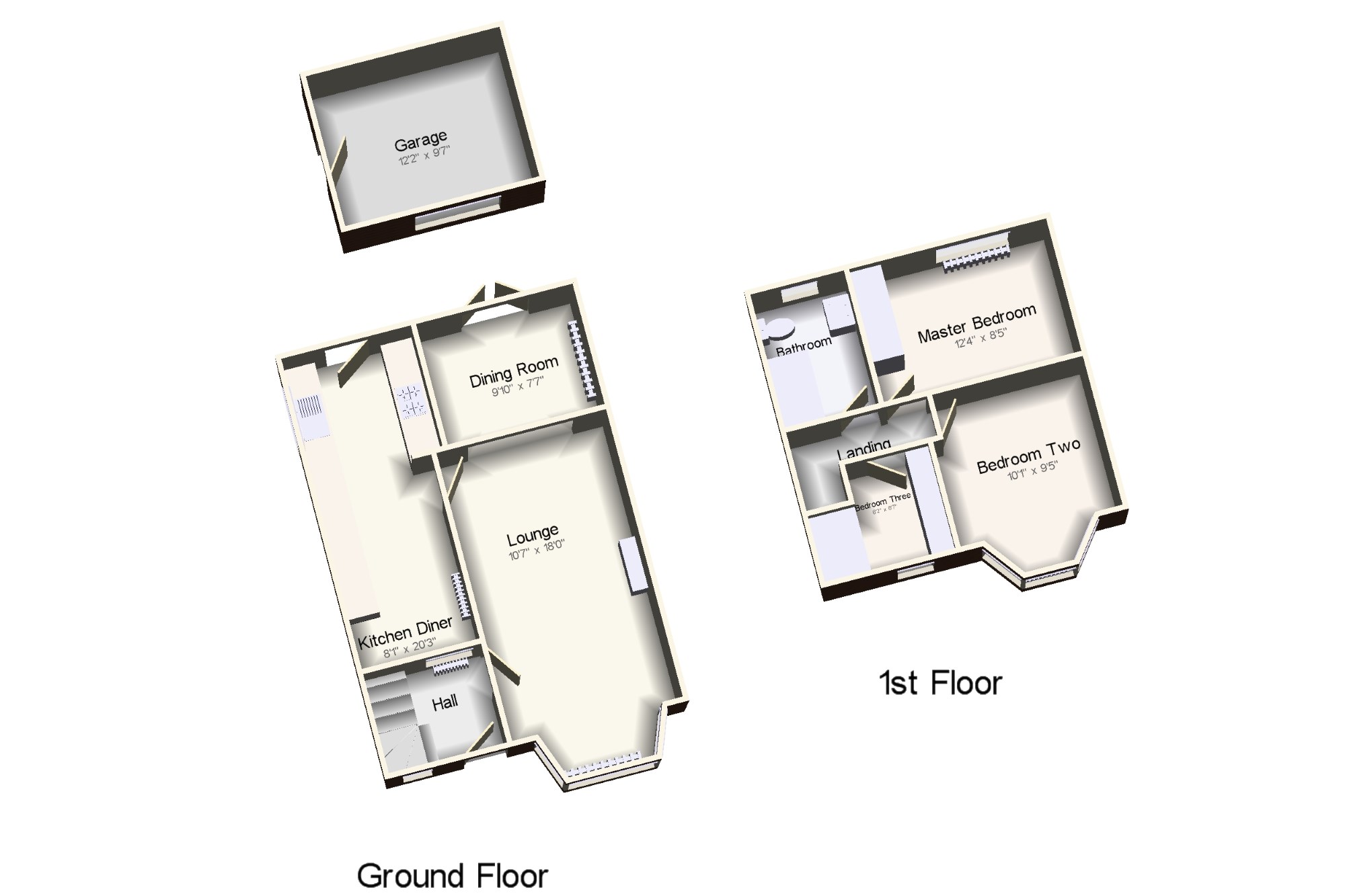 Bedroom Two10'1" x 9'5" (3.07m x 2.87m). Double bedroom; double glazed uPVC bay window facing the front. Radiator, carpeted flooring.