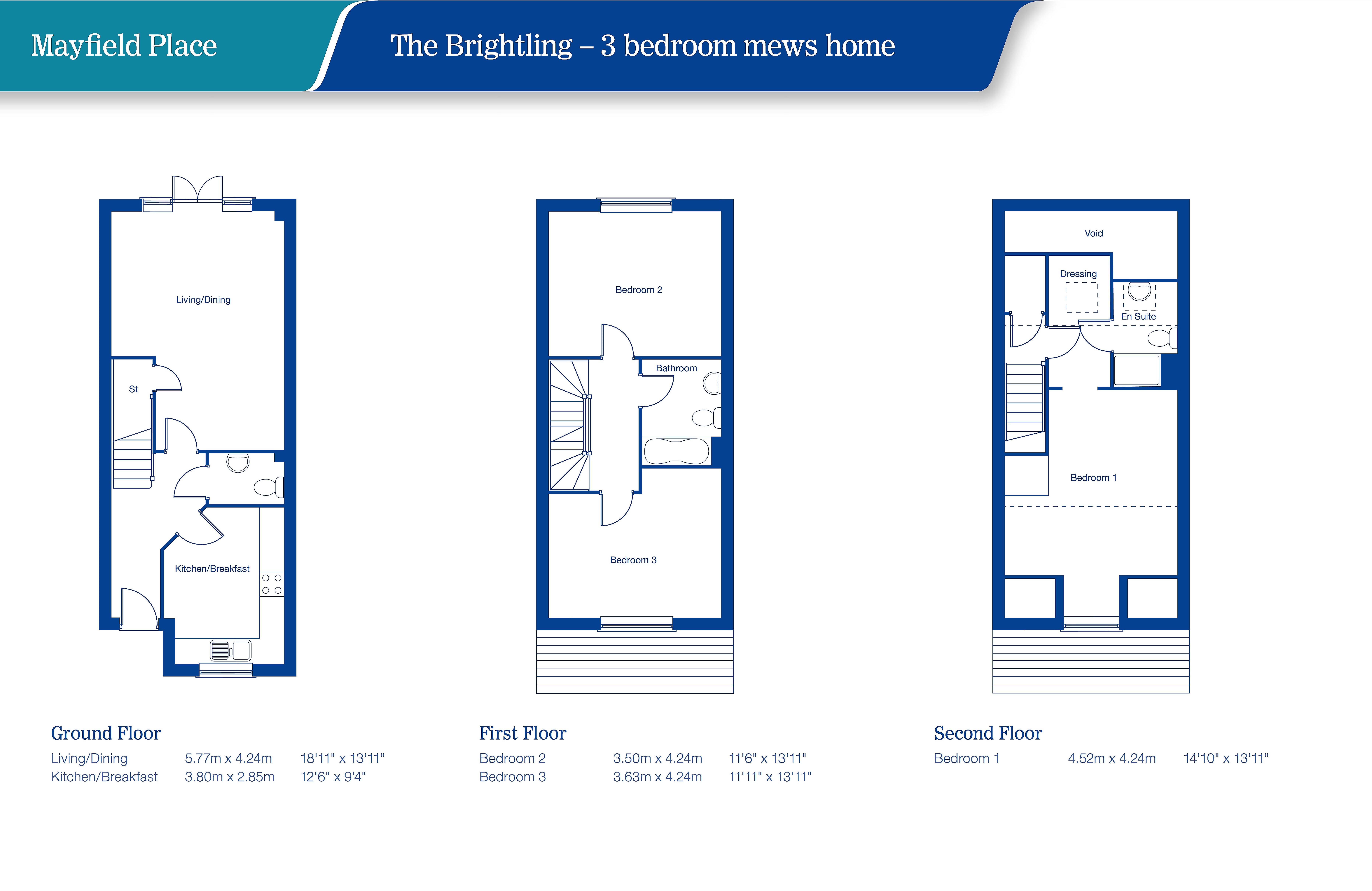 The Brightling is a sleek and modern new home laid out over three floors with high specification features throughout. The high gloss kitchen is fully fitted with fridge/freezer, washing machine, neff oven and wine chiller. There is a separate w.C. And the living/dining room is located to the rear with French doors leading out onto the garden. On the first floor there are two double bedrooms and the family bathroom with Villeroy & Boch wash basin. The master suite occupies the second floor and benefits from a luxury en-suite shower room with Aqualisa fittings. Outside the property there are two allocated parking spaces plus a secluded and tranquil east facing garden with a unique rockery backdrop.
