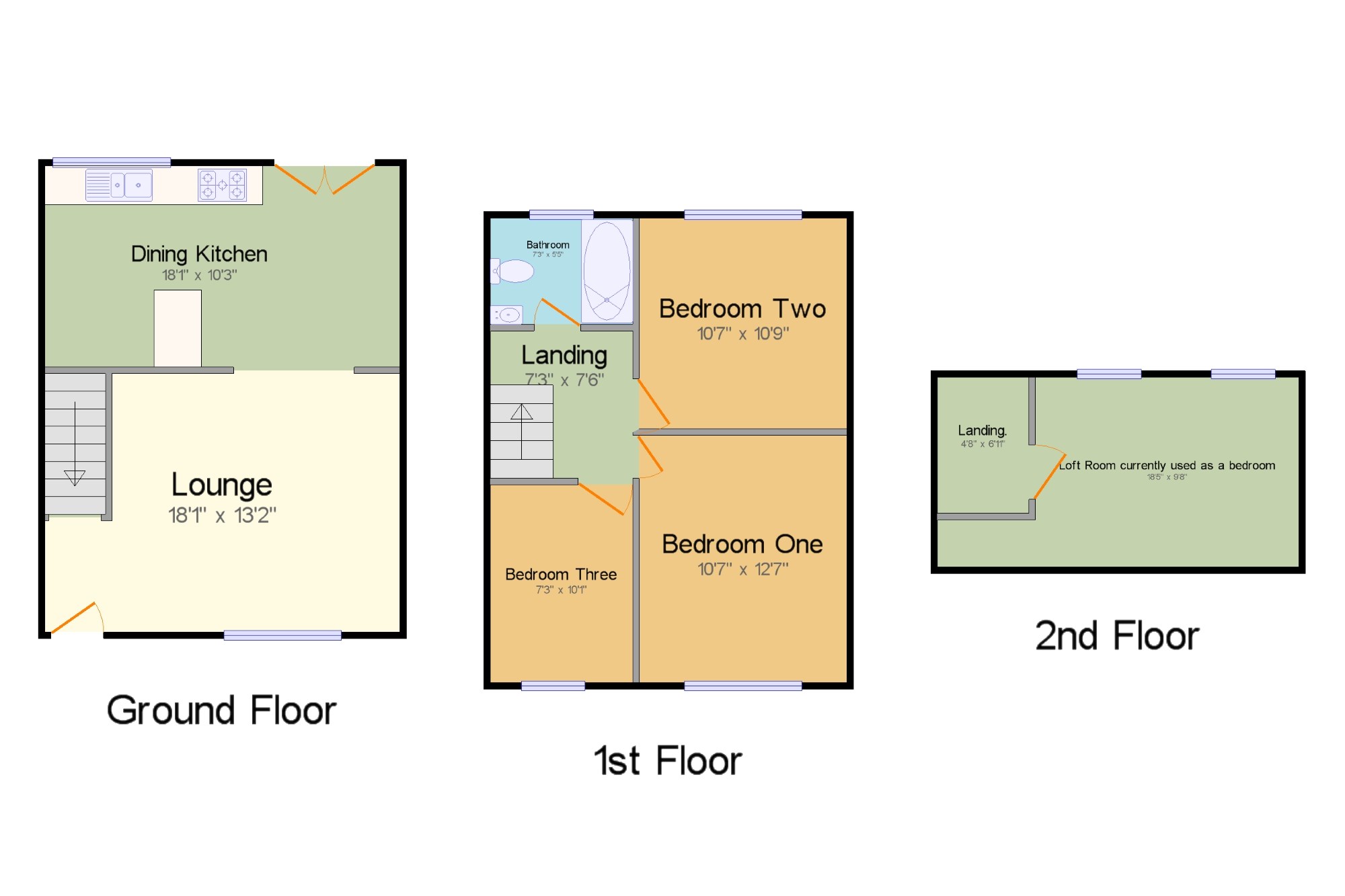 Bedroom Three7'3" x 10'1" (2.2m x 3.07m). Single bedroom; double glazed uPVC window facing the front. Radiator, carpeted flooring.