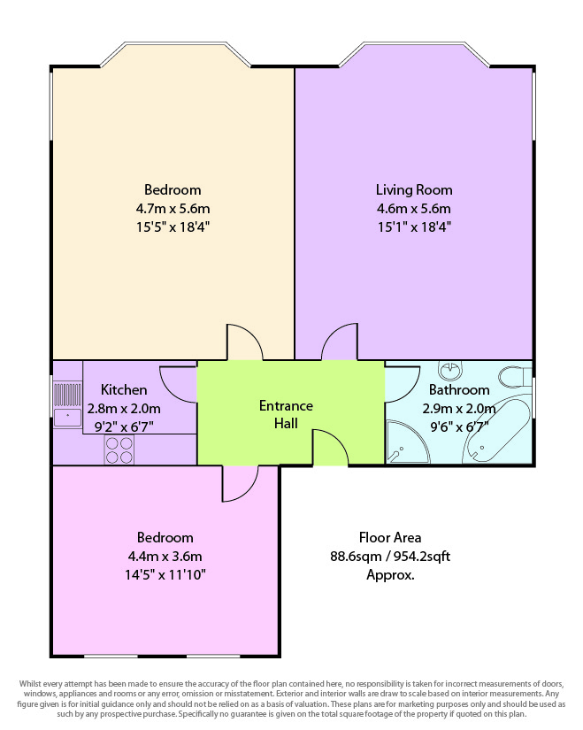 Entrance door leading through to apartment hallway, spacious lounge flooded with natural lighting from sash windows overlooking the rear aspect of the building. A separate kitchen with integrated appliances including: Fridge freezer, dishwasher, gas hob, double oven, extractor fan and dual steel sink. Two double bedrooms, master bedroom is similar to the lounge, with ample natural lighting from sash windows overlooking the rear aspect of the building. Main bathroom benefits from a white three-piece suite: Sink, toilet and bath, as well as a separate shower cubicle.