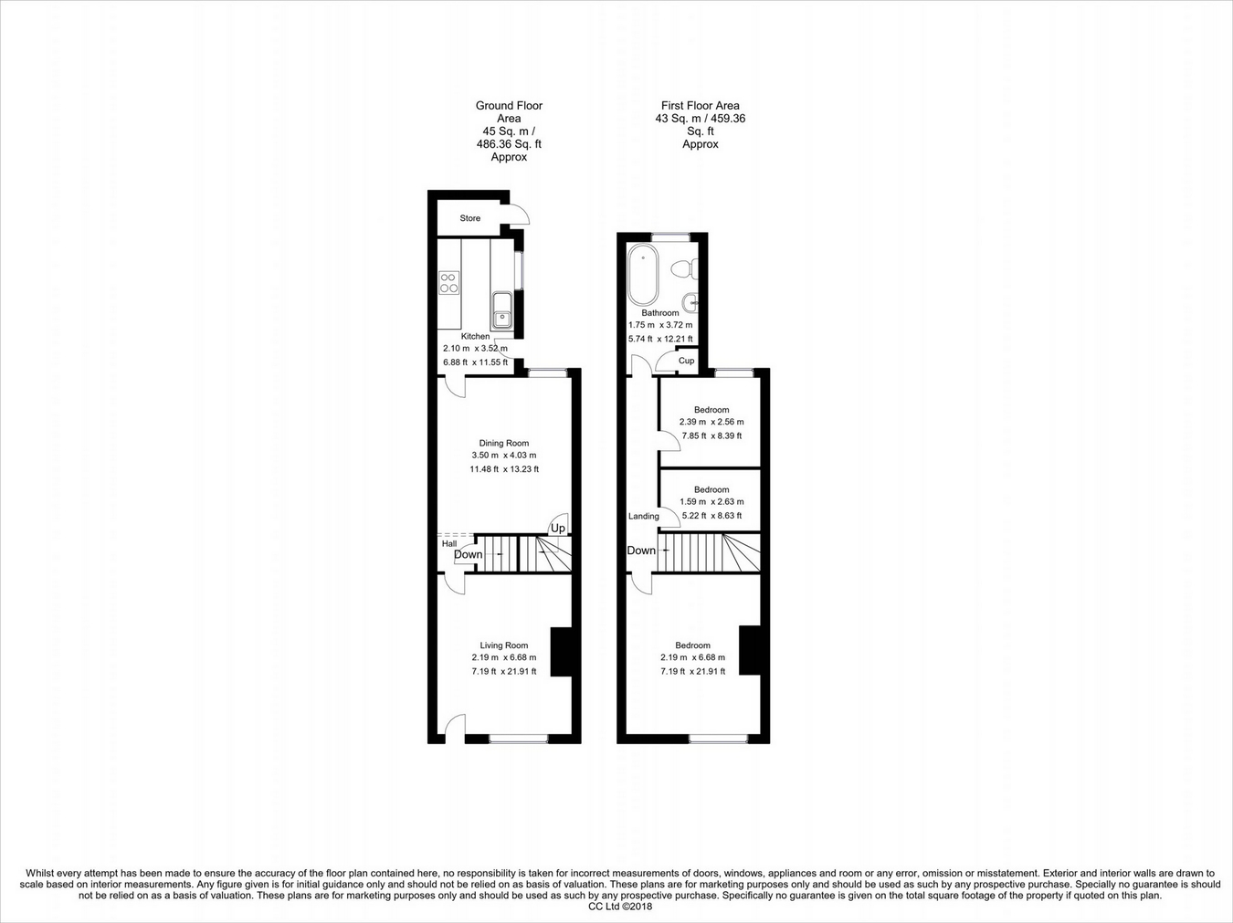 21' 11" x 7' 2" (6.68m x 2.19m)