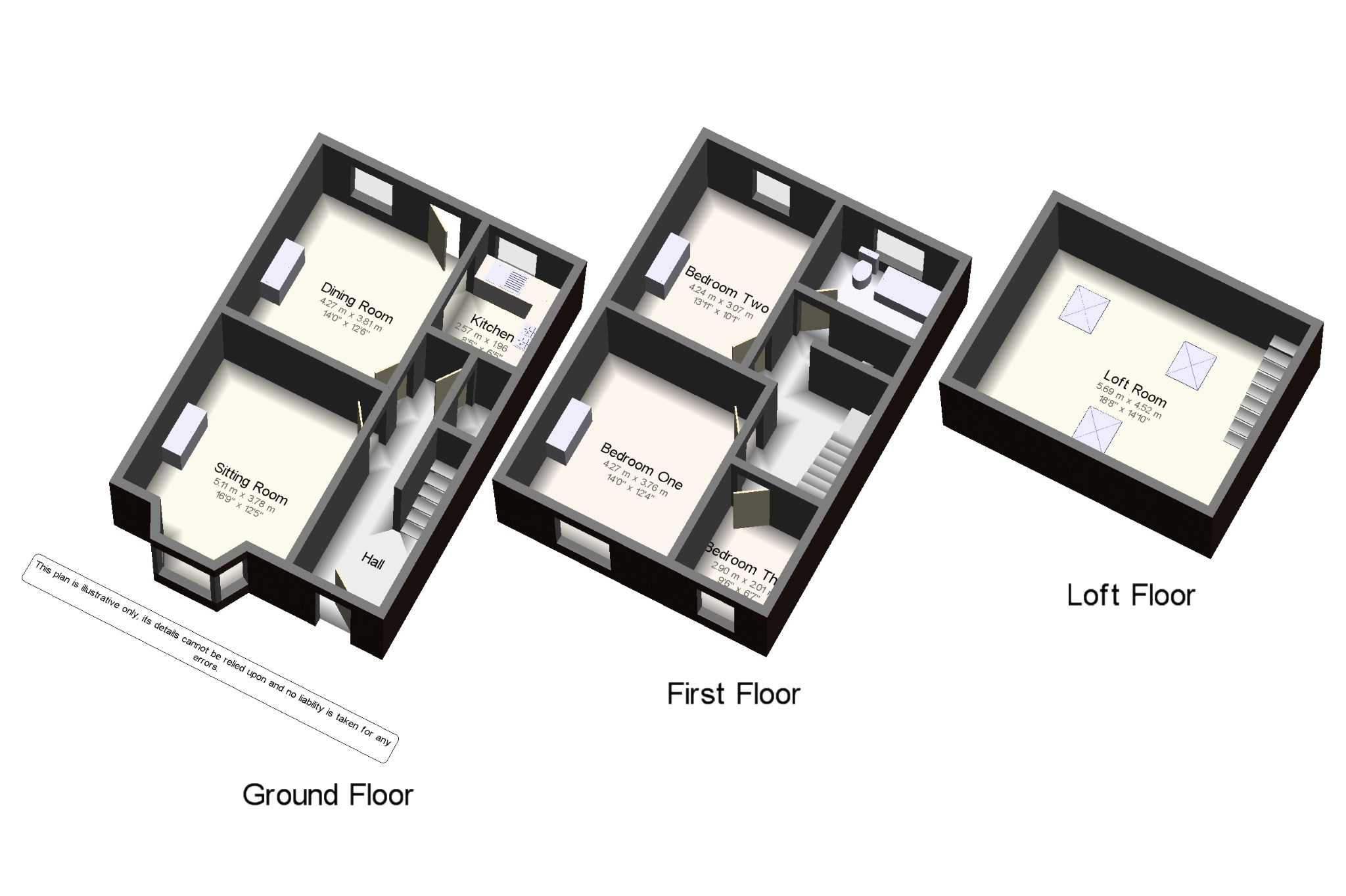 Three bedrooms and a loft room