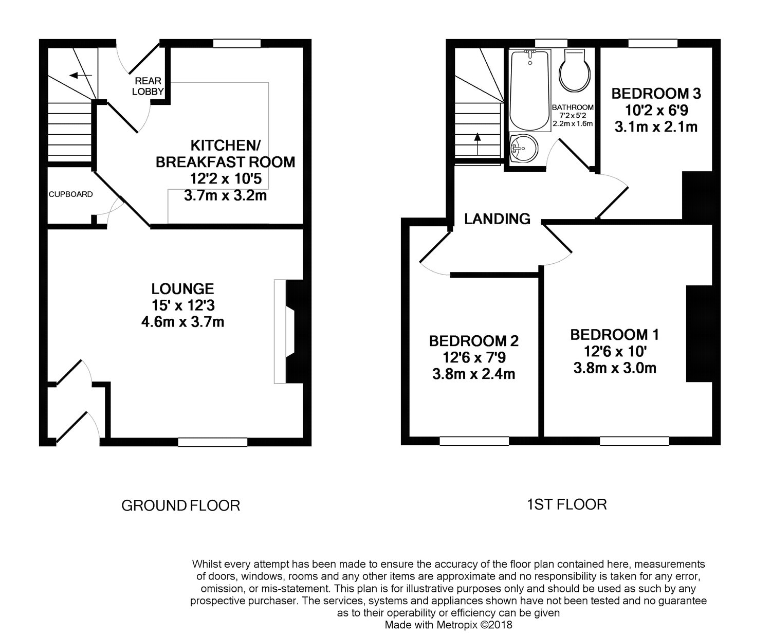 Step inside the entrance vestibule and a door opens to the good size lounge with a gas fire set into the chimney breast. From the lounge a door leads into the modern fitted kitchen with its range of white wall and floor units, incorporating a single drainer sink unit, space for an electric cooker and plumbing for a washing machine. A large built in understairs storage cupboard provides ample space for items such as a vacuum cleaner and a door leads to the rear lobby. From the lobby stairs lead up to the first floor and an exteriod door opens to the yard. On the first floor a good size landing leads to 3 good size bedroom all big enough to accommodate a double bed. A 3 piece bathroom with panelled bath and overhead electric shower, pedestal wash basin and low level wc complete the accommodation.