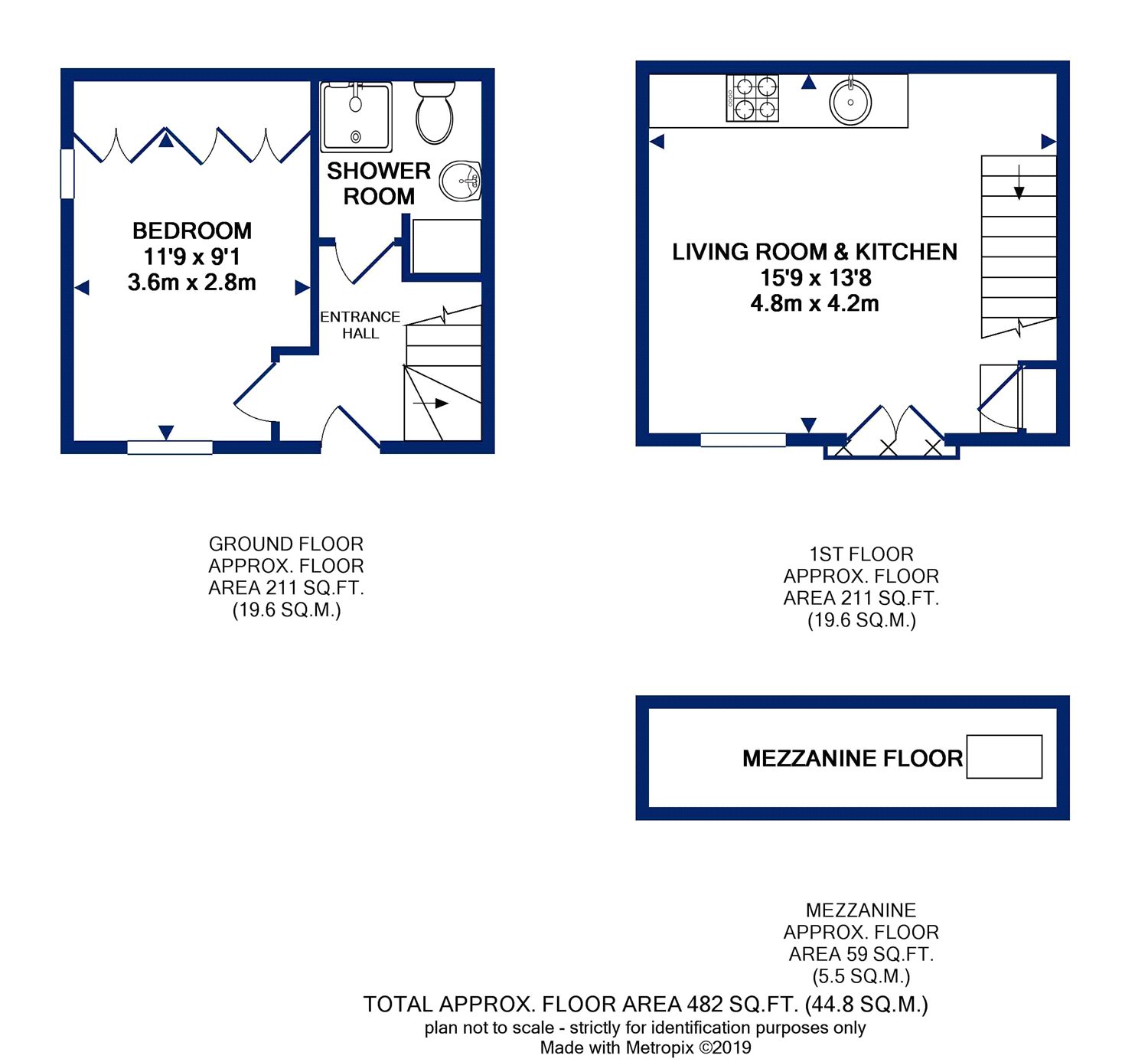 Featuring uPVC double glazing and gas fired central heating and briefly comprises to the ground floor: Entrance hall, the bedroom which is a good size double with full length fitted wardrobes, and the shower room which is part-tiled and fitted with a shower cubicle, washbasin and WC as well as plumbing for a washing machine. To the first floor is the impressive open plan living room and kitchen which is fitted with a range of cream high gloss wall and base units with an integrated gas hob, electric oven and fridge freezer as well as a Juliet balcony and a mezzanine floor above which is accessible by ladder and used by the current owners as a home office. Externally there is an allocated parking space in front of the property as well as access to the communal green spaces within the development.