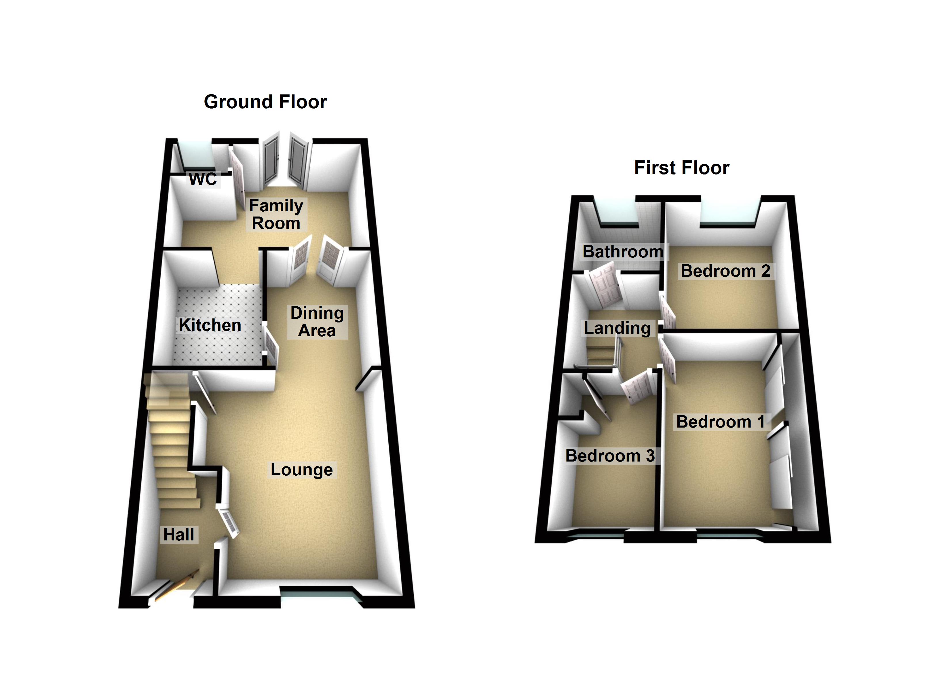 Family room 13' 10" x 10' 4" (4.24m x 3.15m) Double glazed french doors leading to the rear garden, a range of fitted wall units, radiator.
