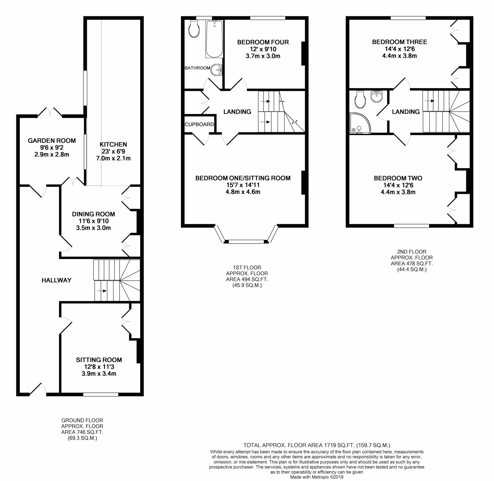 Secondary glazed bay window to front with outstanding view of Salisbury Cathedral. Open fireplace with cast iron insert. Two radiators. Large walk-in cupboard. Painted floorboards. Coved ceilings.
