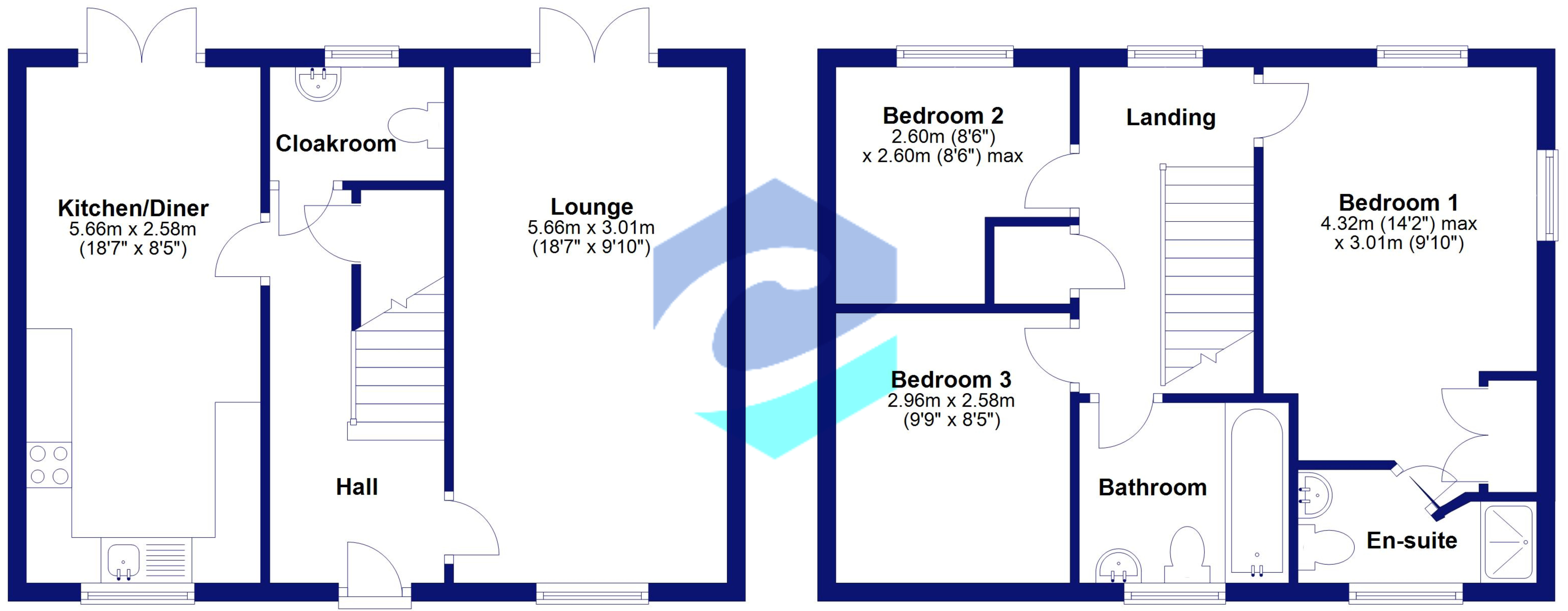 The entrance hall allows access to the double aspect lounge with French doors to garden, Cloakroom fully equipped with a low level toilet and hand basin, understairs storage and access to the Kitchen / Diner. The Kitchen / Diner is well equipped with wall and base units and a roll top work surfaces. There is space for a good sized fridge / freezer, the gas central heating boiler which is housed in a wall unit, integrated dishwasher, space for a washing machine, built in oven with hob and extractor fan, sink /drainer and French doors lead into the garden.