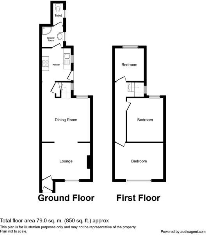 A flight of stairs leads to the first floor. Bedroom One, 3.9m x 3m, having front facing double glazed window and radiator. Bedroom Two, 3.5m x 3.1m, having rear facing double glazed window and radiator. Bedroom Three, 2.7m x 2.4m, having rear facing double glazed window and radiator. All mains services are believed to be connected to the property although these have not been tested by ourselves.