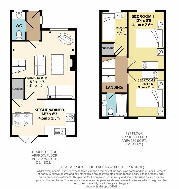 The accommodation on offer briefly comprises a useful entrance hall with W.C off, a generous living room and an open plan kitchen diner with double doors that open out to the garden. To the first floor there are two double bedrooms and a further single bedroom and the family bathroom. Externally there is a mature lawned garden.