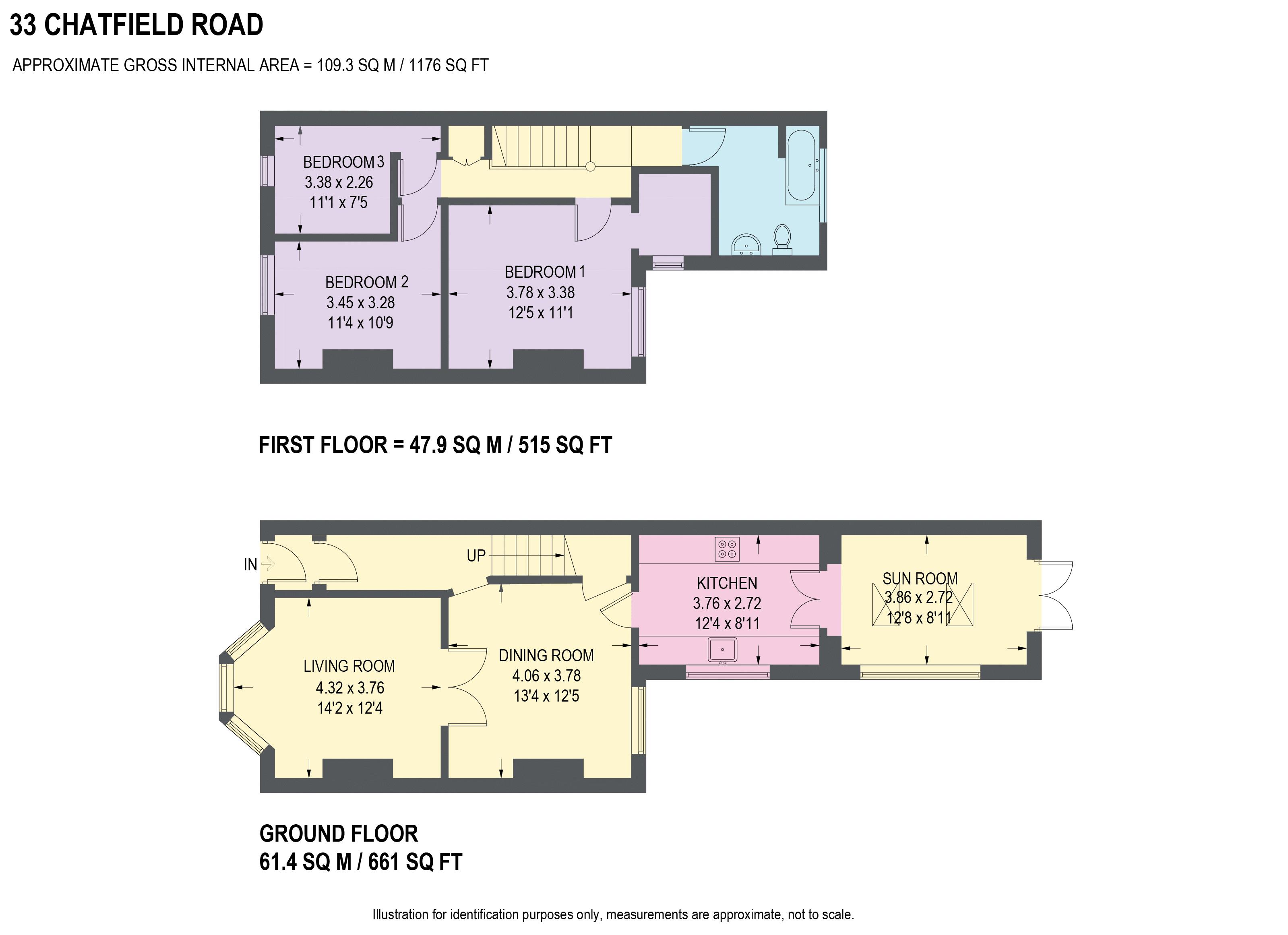 A superb 3 bedroom terrace house with 3 reception rooms standing in generous gardens. The property offers generously proportioned accommodation over two levels, has a separate entrance hallway, living room and dining room with feature fireplaces, kitchen with built-in appliances and double glazed doors to a sun room with further doors to a decked terrace and gardens, uPVC double glazing and gas central heating with combination boiler. The accommodation comprises: Porch. Entrance hallway with tiled floor, coving to the ceiling, dado rail and feature stained glass panel. Living room with bay window, feature fireplace with illuminated electric fire, coving, picture rail and half glazed doors to a separate dining room with coving, ceiling rose and feature fireplace with electric log style burner. Kitchen having a range of white high gloss units complemented by solid beech wood worktops, hob, oven and extractor included, wood floor, coving and glazed double doors to a sun room with wood floor, two Velux windows and French doors to a decked terrace. Landing with store cupboard, coving and access to the roof space. Bedroom 1 with coving, ceiling rose and walk-in wardrobe with wood floor. Two further bedrooms with coving. Attractive bathroom having a white suite, shower, part tiling and downlighters. Front garden with slate chippings. To the rear is a flagged patio, decked terrace and generous lawn enclosed by rustic fencing. Chatfield Road enjoys excellent facilities including pubs, bars, restaurants, shops, schools, Graves Park and excellent access to Sheffield, Chesterfield and the motorway network.