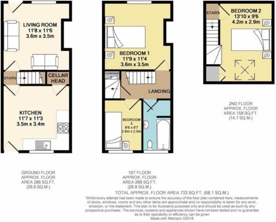 A flight of stairs leads to the second floor, 4.2m x 2.9m, having rear facing velux window, and radiator.