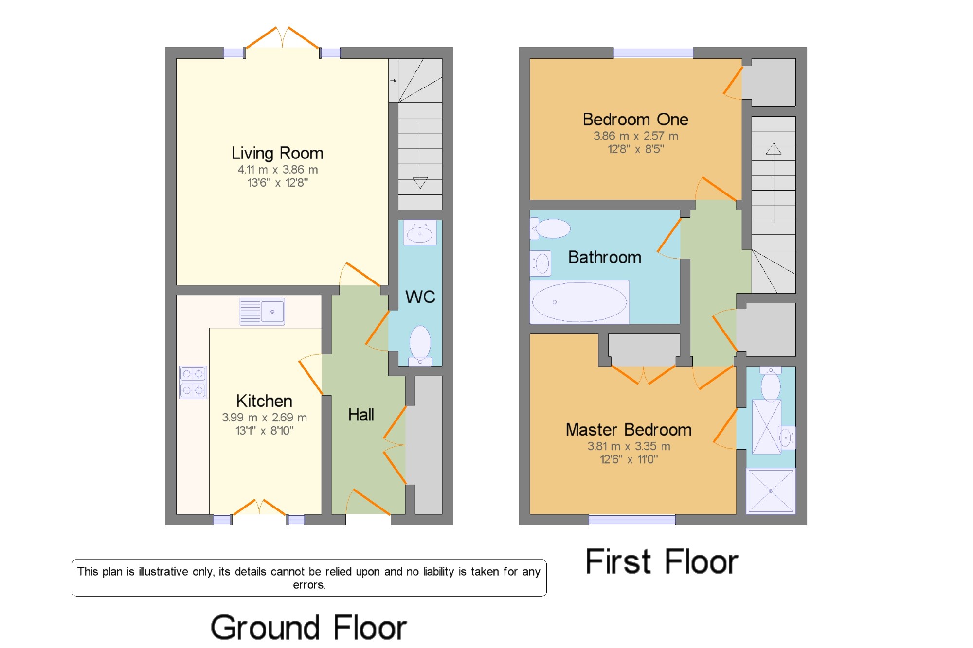 Master Bedroom12'6" x 11' (3.8m x 3.35m).
