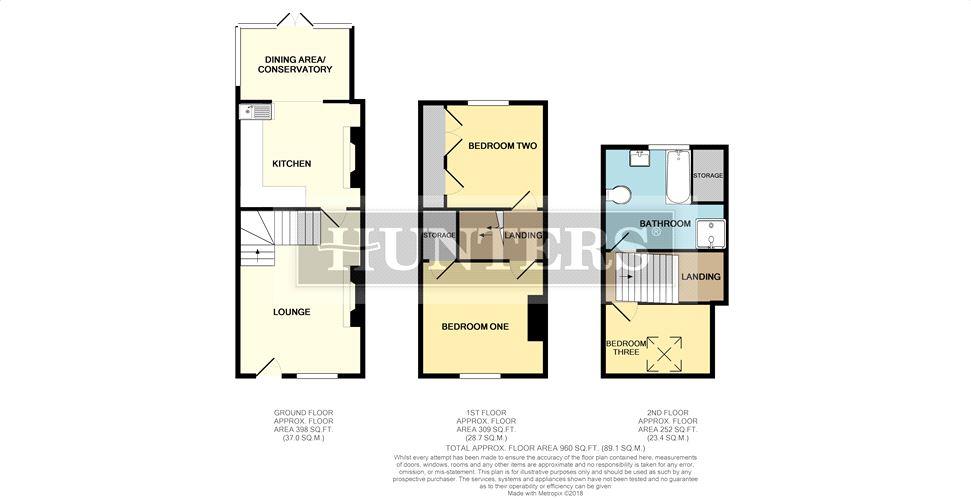 Enter the property into the living room with a wood burning fire. A door then leads to the spacious kitchen diner. Stairs to the first floor landing lead to two double bedrooms and further stairs lead to bedroom three and the house bath/shower room.