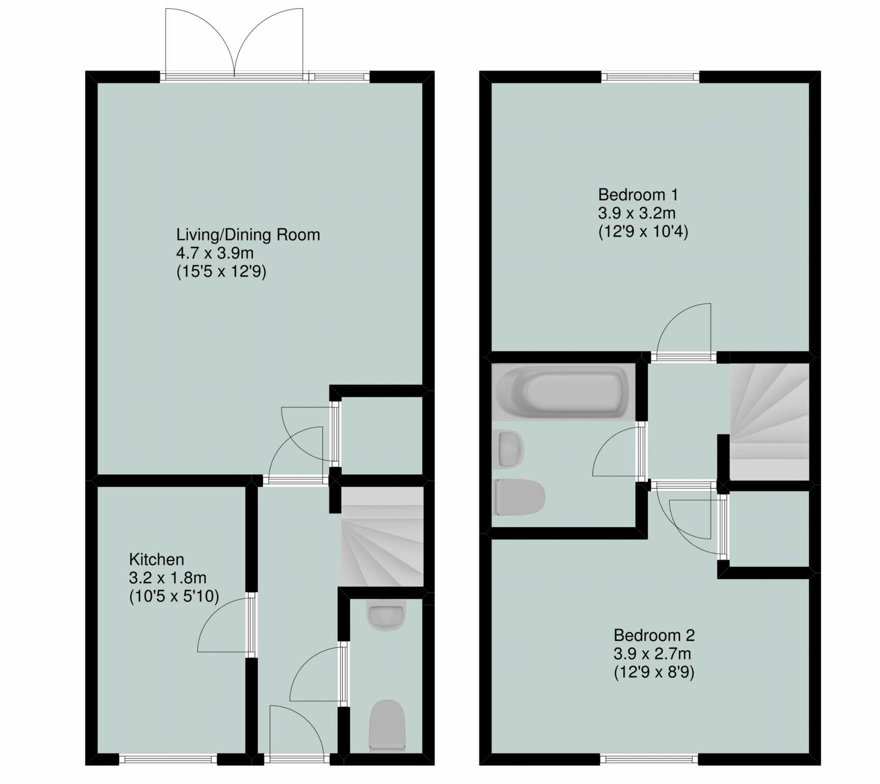 The property is in excellent order throughout with well presented accommodation comprising an entrance hall with cloakroom off, sitting/dining room with understair storage cupboard and glazed patio doors to the garden. Kitchen with high gloss cream units incorporating a Smeg double oven with halogen hob and extractor fan, an integrated dishwasher, space and plumbing for a washing machine and space for a fridge/freezer. Upstairs, leading off the landing, is a double bedroom with views to the surrounding countryside, a good sized single bedroom with airing cupboard housing the hot water cylinder and a family bathroom with pedestal basin, WC and panelled bath with shower over.