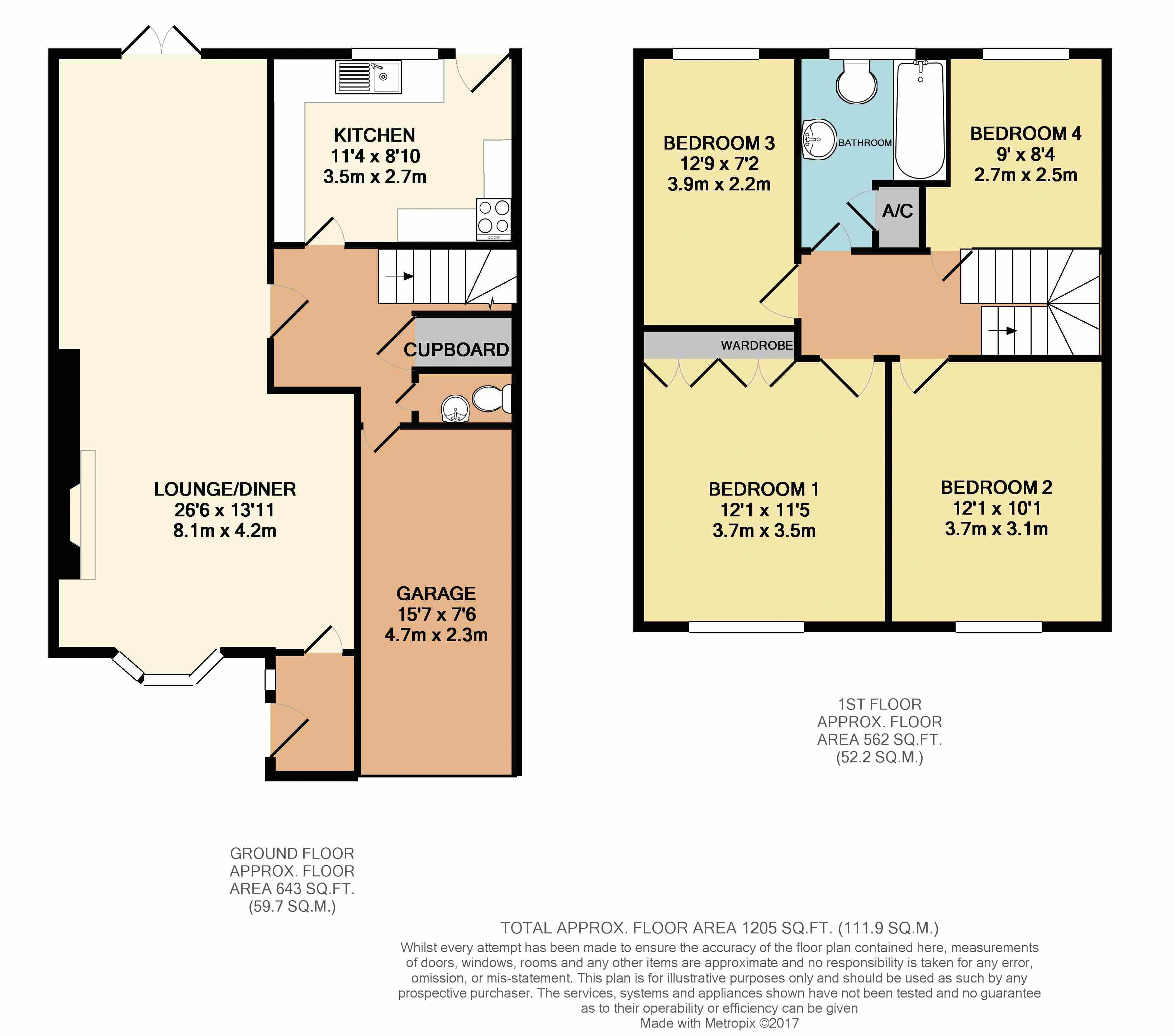 Double glazed window to rear aspect. Three piece suite comprising low level w.C. Pedestal wash hand basin with mixer tap, panelled bath with electric shower, airing cupboard housing hot water cylinder, wall mounted heated towel rail.