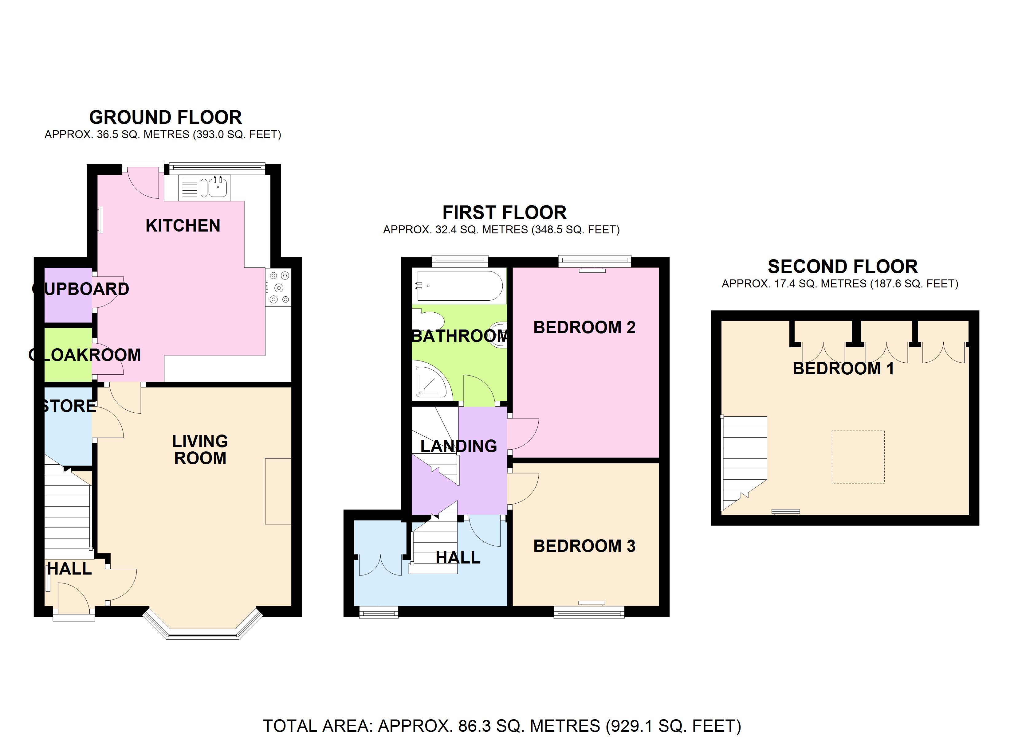 The accommodation comprises on the ground floor; front hall, bay windowed living room with fireplace, extended kitchen to the rear. Stairs rise from hall to the first floor landing offering two bedrooms and bathroom. The second floor is accessed via inner landing and leads to a superb master bedroom. To the front there is ample off road parking for several cars. The passageway to the side leads to the rear offering a stunning garden offering a wonderful space to entertain or relax.