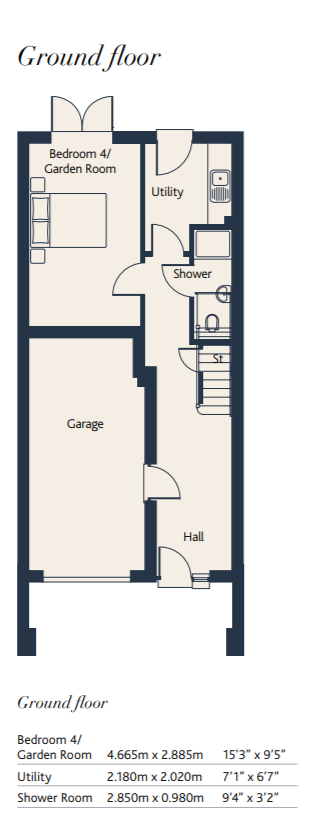 The Rigton is an elegant home over three floors, with modern design features, including a stylish fitted kitchen, a ground floor garden room and an open-plan dining and family area.