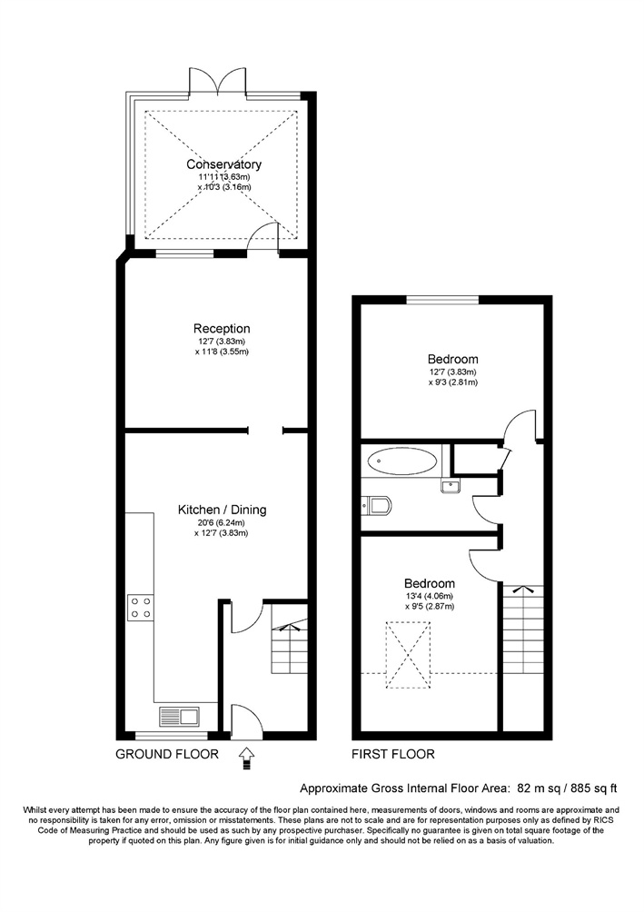 Martin Flashman & Co are delighted to offer for sale this great size two bedroomed staggered terrace house situated in quiet cul-de-sac within an easy 10 minute stroll of Weybridge town centre with its fantastic mix of shops, cafes and restaurants, and importantly those with young children within the catchment for some of the areas most favoured schools. It is also easily accessible to Weybridge station with its fast and frequent services to London as well as many lovely riverside walks along the Thames and River Wey. The front door opens into an entrance hall with stairs which gives access to the first floor and a door which opens into a large open plan kitchen/diner. Fitted with modern Shaker style units providing plenty of cupboards and drawers with expansive wood block work surfaces it is fitted with a hob, hood, integrated fridge and freezer and provides space for other utilities. Fitted with laminate oak flooring throughout the ground floor a doorway leads through to a comfortable lounge which in turn leads through to a sunny conservatory which is currently used as an office which would also make a great children’s play room. Upstairs you will find two great size double bedrooms and a surprisingly large bathroom which is fitted with a white suite and includes an electric over bath shower. Outside to the front the gated front garden is gravelled for easy maintenance whilst the rear garden is principally lawned with a small paved patio adjacent to the conservatory and gated access to the rear. There is also an allocated parking space directly to the front. Already an attractive property, planning permission has been granted to convert and extend the ground floor to provide a bedroom to the front and open plan and enlarge the living accommodation to the rear, plus consent to install a garden studio/office/garden room. A tremendous opportunity!