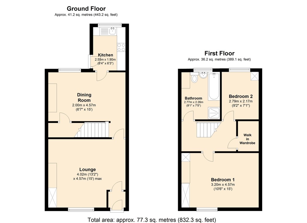 The well-presented accommodation briefly comprises of entrance vestibule leading into the lounge with handy storage and feature fireplace, then onto the dining room/second reception room to the rear of the property with access to the under stairs storage and the kitchen in the single-story extension with a range of base and wall units and an integral oven and hob.