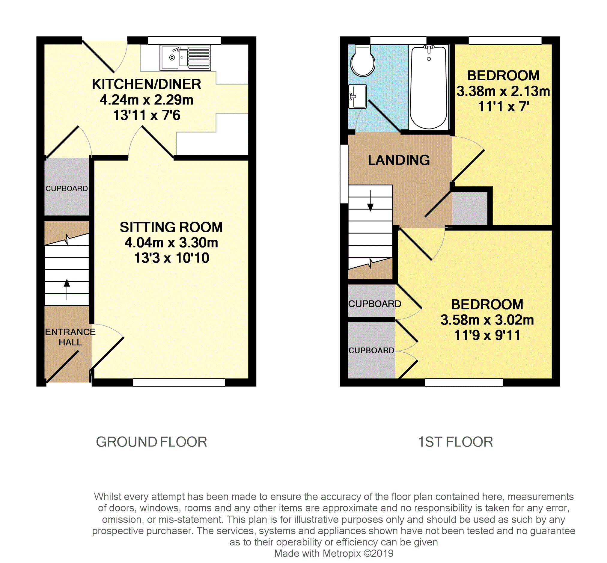 The front door opens into a small entrance hall with a door to the living room and stairs to the first floor.