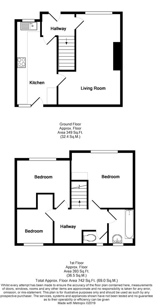 Gravelled front driveway providing parking for two cars. Good size rear garden with timber fence surround.