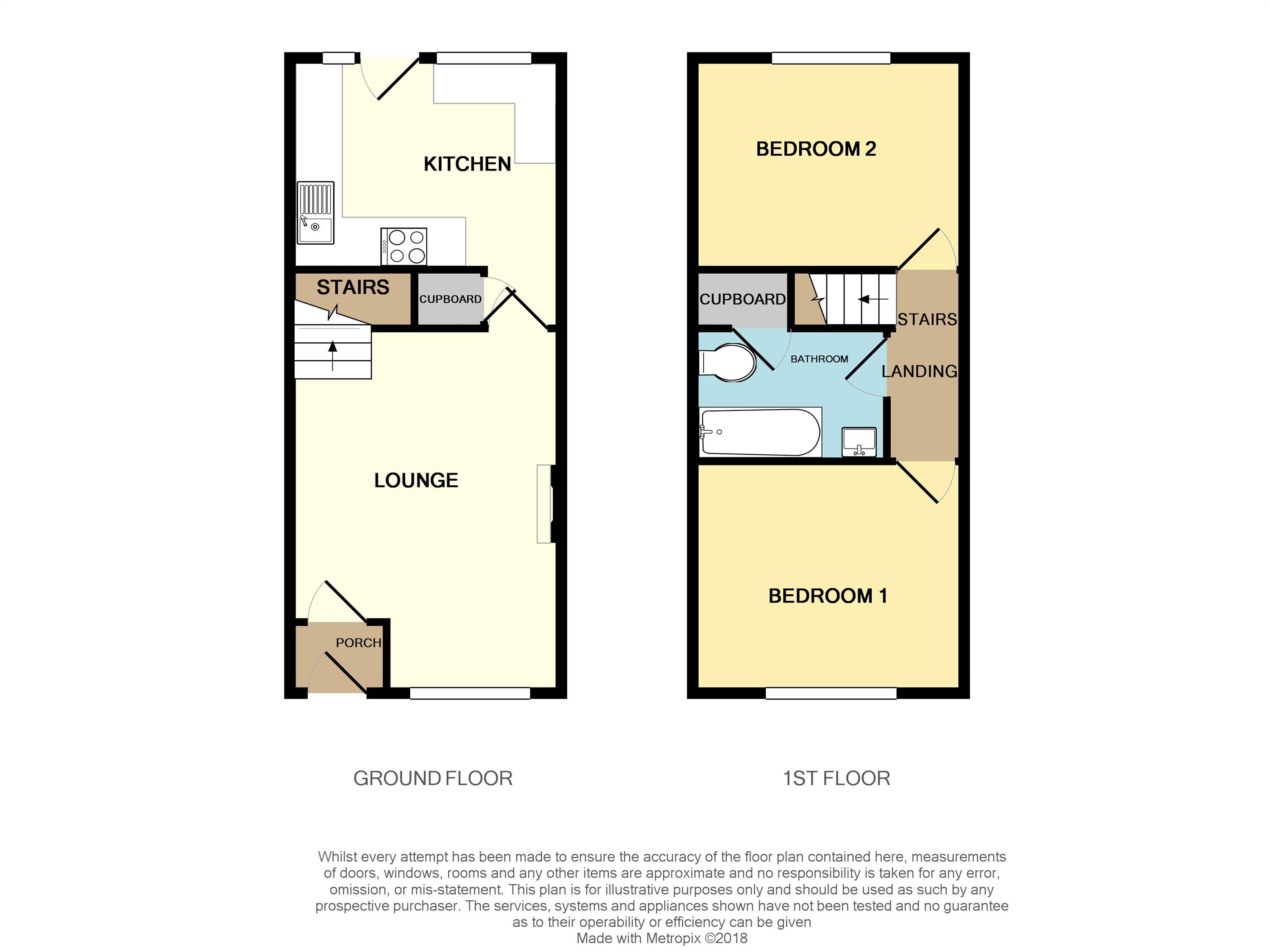Comprising bath with electric shower over, wash hand basin, close coupled wc, over stairs storage cupboard housing hot water cylinder