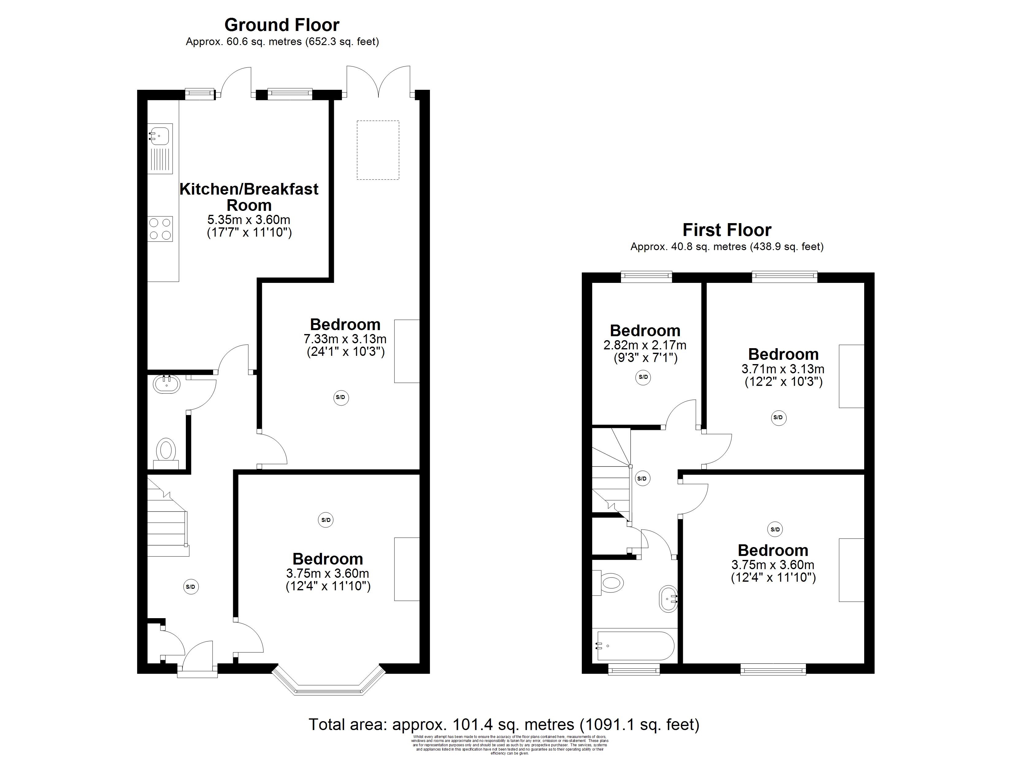 A four bedroom victorian house with large kitchen/lounge, bathroom, downstairs W.C, close to high street and rear garden. Private rear garden.