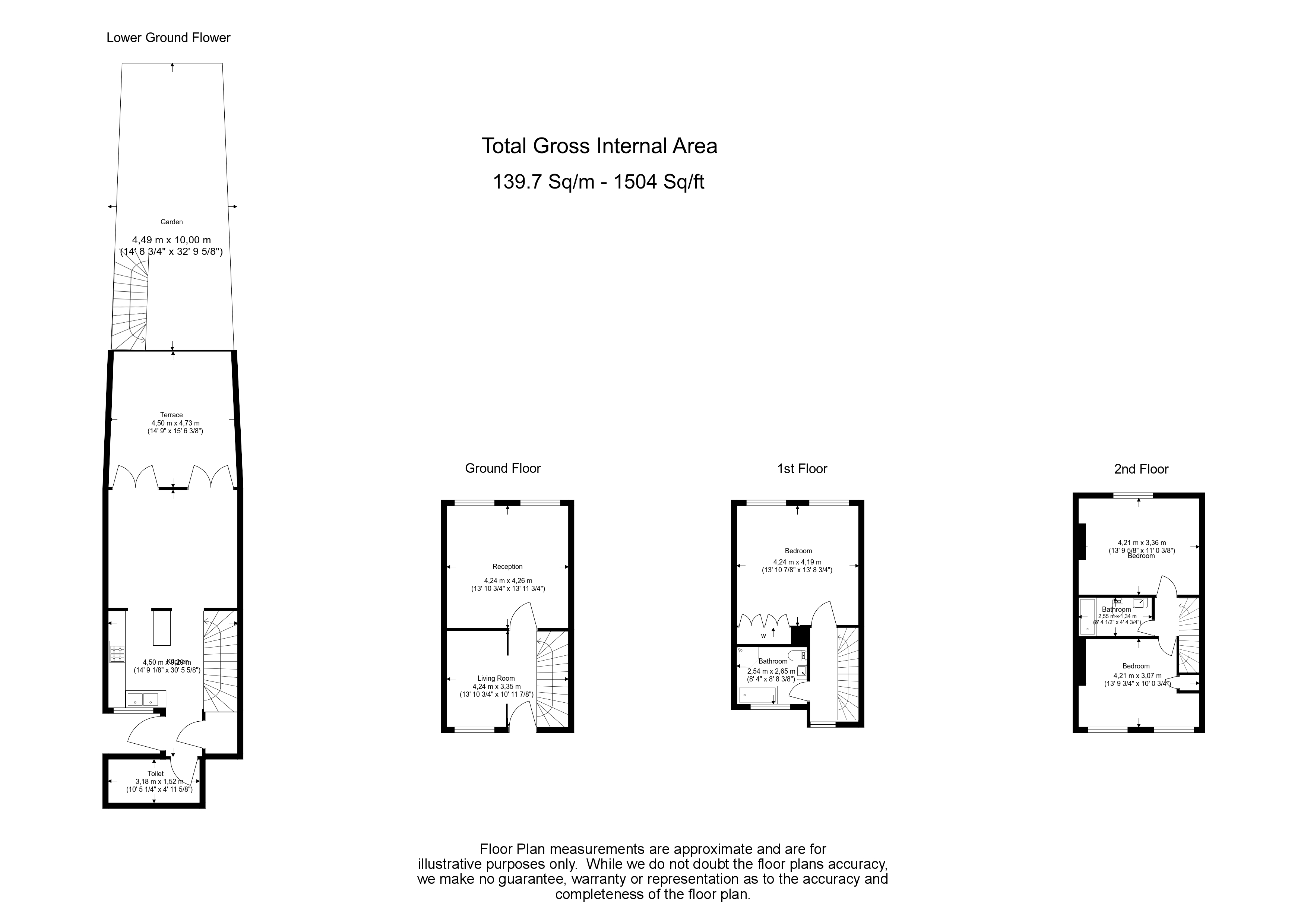 Reception and office room on the ground floor, master bedroom with built in wardrobes and a brand new family bathroom on the first floor and two double bedrooms and a newly refurbished shower room on the second ( top ) floor.