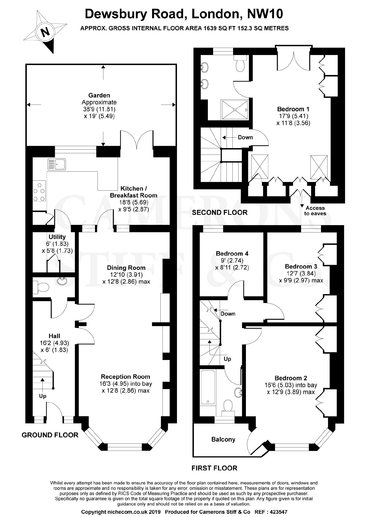 Available 25th March 2019 - We are pleased to present this charming four bedroom property situated on Dewsbury Road, one of the most sought after areas in Dollis Hill. Spanning 1639 sq ft over three levels, this family home comprises a large entrance hall, a bright reception room with bay window, a large dining room and a fully fitted kitchen with breakfast area leading out to a 37ft rear garden & patio area. The Edwardian terraced house has been modernised with double glazing and a converted loft offering a master bedroom with en suite bathroom. On the first floor there are three bedrooms and a family bathroom. Boasting ample built-in storage, a utility room and cloakroom WC on the ground floor.