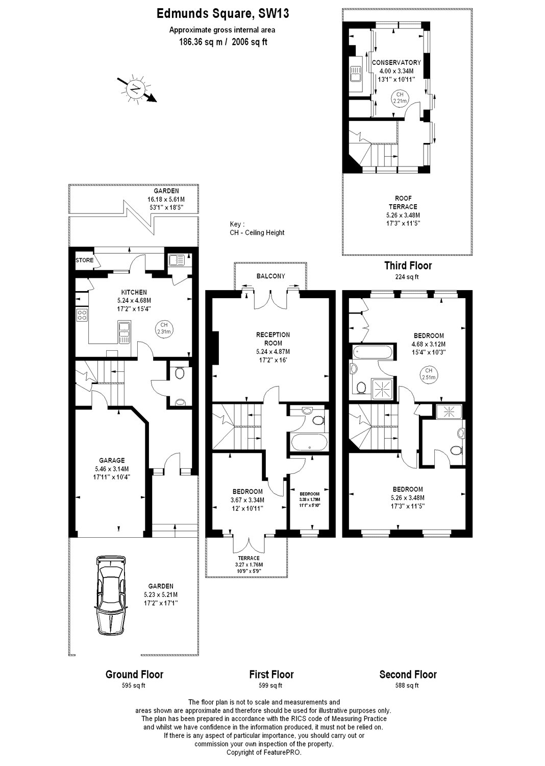 A modern terraced house, measuring approximately 2,006 square feet, within Harrods Village. The property boasts a generous south west facing garden, a wrap-around roof terrace with views over the original depository buildings, two balconies, off-street parking for several vehicles, a garage and a swimming pool and gym within the development.