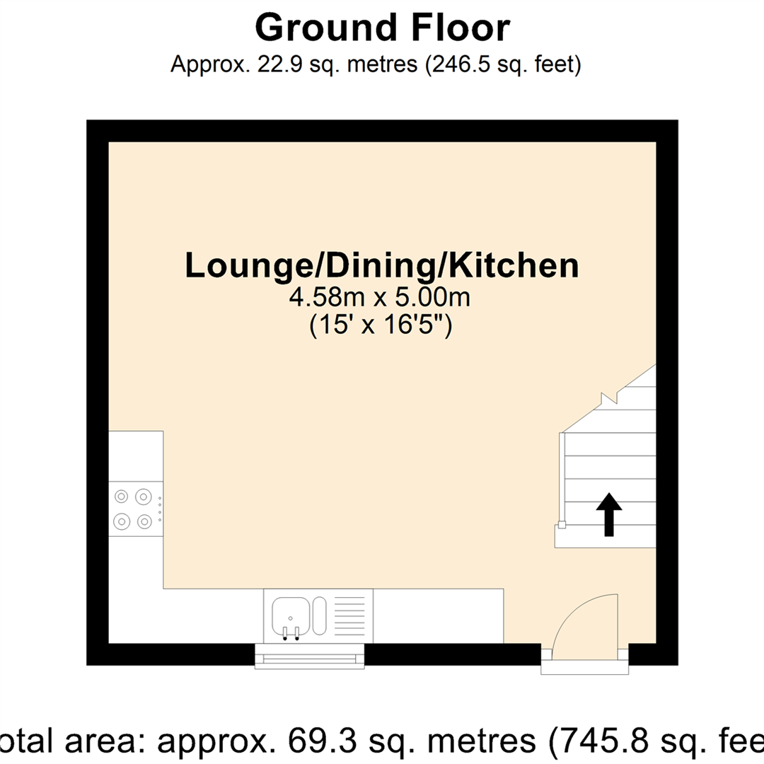 From the ground floor open plan Living / Dining / Kitchen, up to the Landing, there is a good main Bedroom, together with the Bathroom to the first floor, the property also has a further spacious Attic Studio Bedroom, accessed via stairs from the first floor Landing, and with good natural light from the central rooflight.