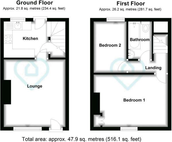 Door onto private rear garden with decked area and lawn. Upstairs comprises a large master bedroom, smaller double bedroom and modern family bathroom with white suite.