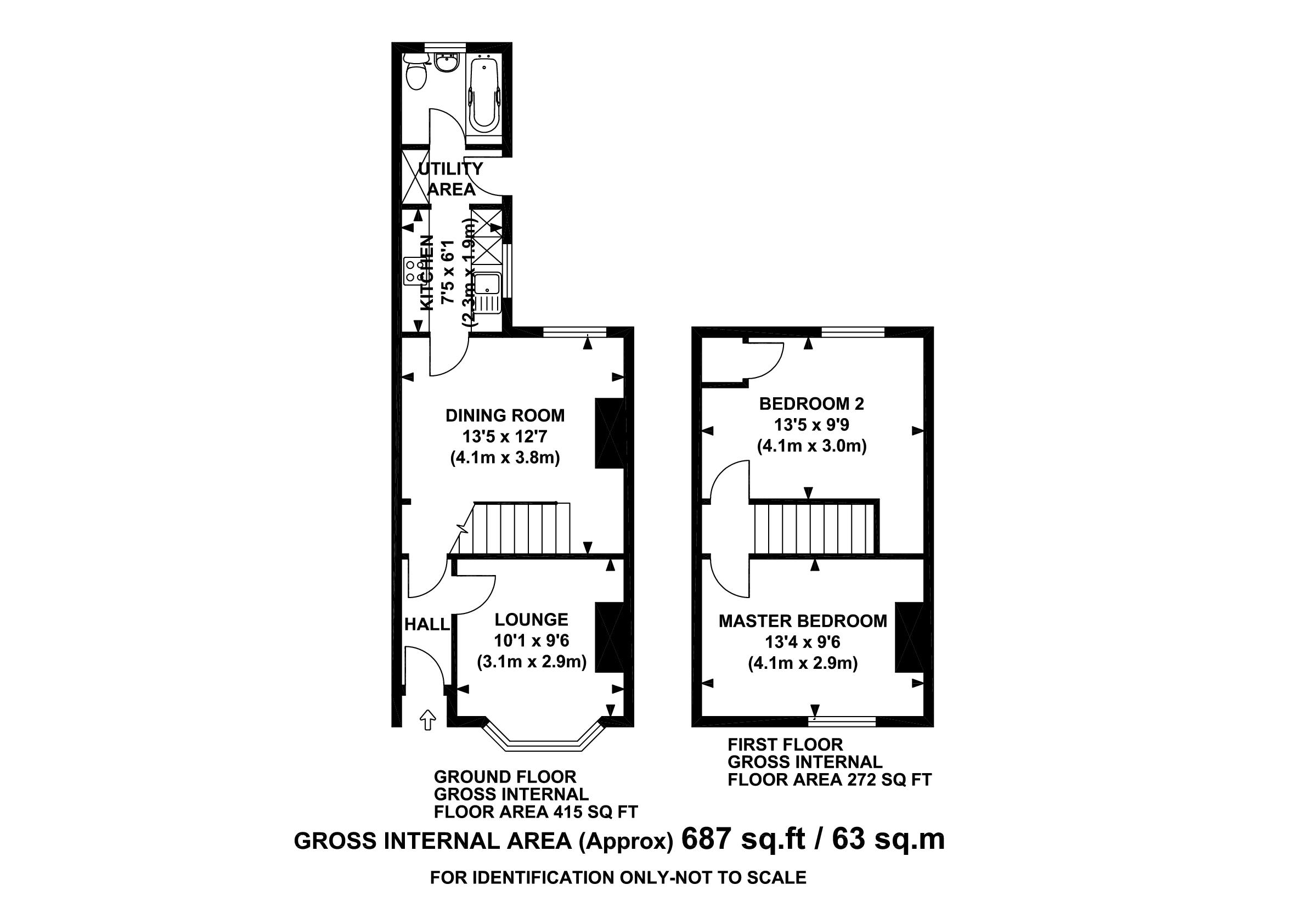 The property boasts a lounge with a feature fireplace, dining room and modern fitted kitchen with electric oven and hob and space for a washing machine. Downstairs bathroom with three piece white suite, and shower over bath. On the first floor there are two good sized bedrooms, one with built in storage/airing cupboard.