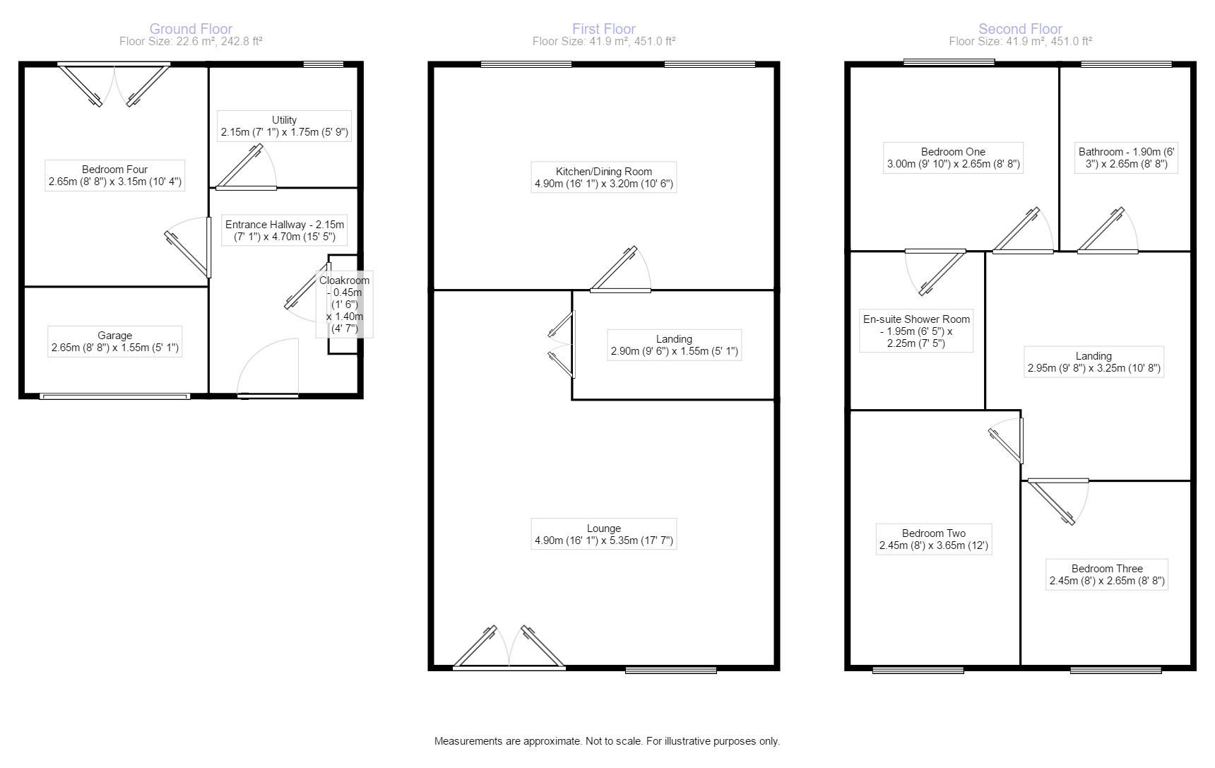 Offer a integral garage to the side. The entrance hallway has lots of storage space and a cloakroom. There is the fourth bedroom on the ground floor along with a utility area with access to the garden. Upstairs is the modern kitchen dining room with a range of units and appliances. The l-shaped lounge is a lovely space with a juliette balcony. The next level has a further 3 bedrooms with the master having e-suite and the family bathroom with a 3 piece suite in white. Externally is a driveway to the front and a garden to the rear.