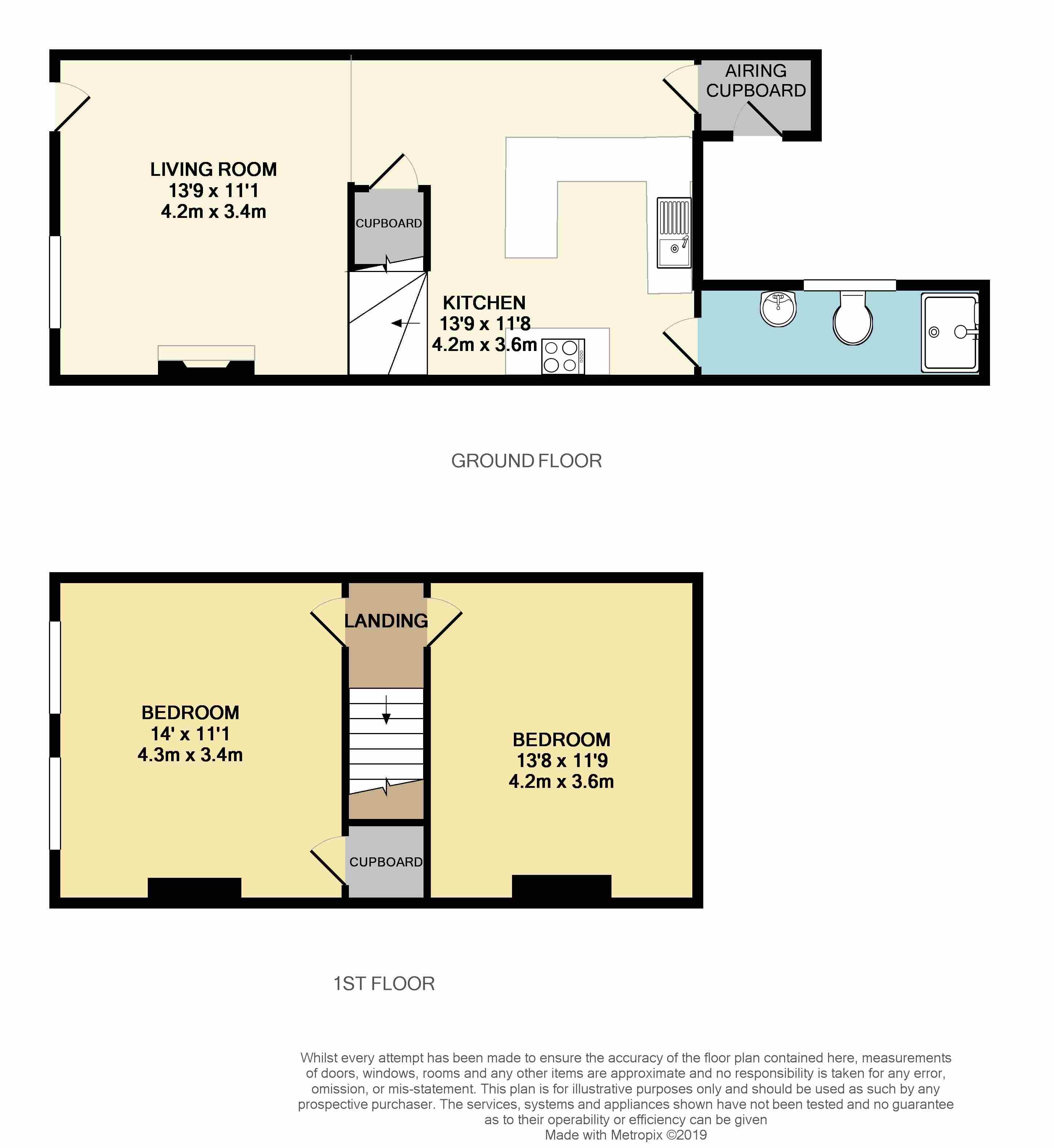 The property comprises a living room with fire place, a large under stair cupboard, a fitted kitchen with integrated appliances and breakfast bar, a lobby room at the back of the property and a shower room which is having new flooring put in. Upstairs comprises two double bedrooms, one with a build in cupboard.
