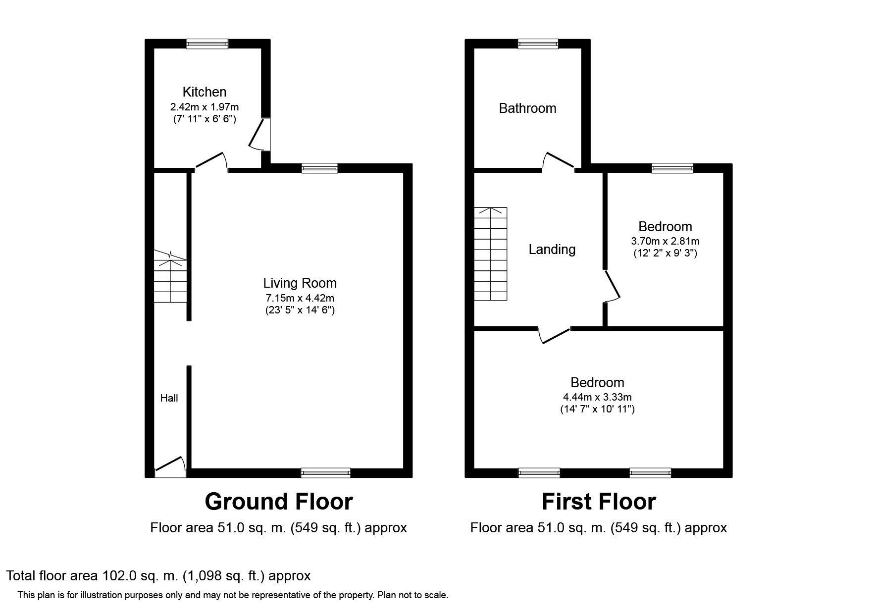 Upstairs, the master bathroom comprises of 3 piece bathroom suite with shower over bath, and two good sized double bedrooms. The master bedroom at the front of the property spans the full width of the house, while the second/guest bedroom also provides more than ample space for a full double bed and accompanying furniture.