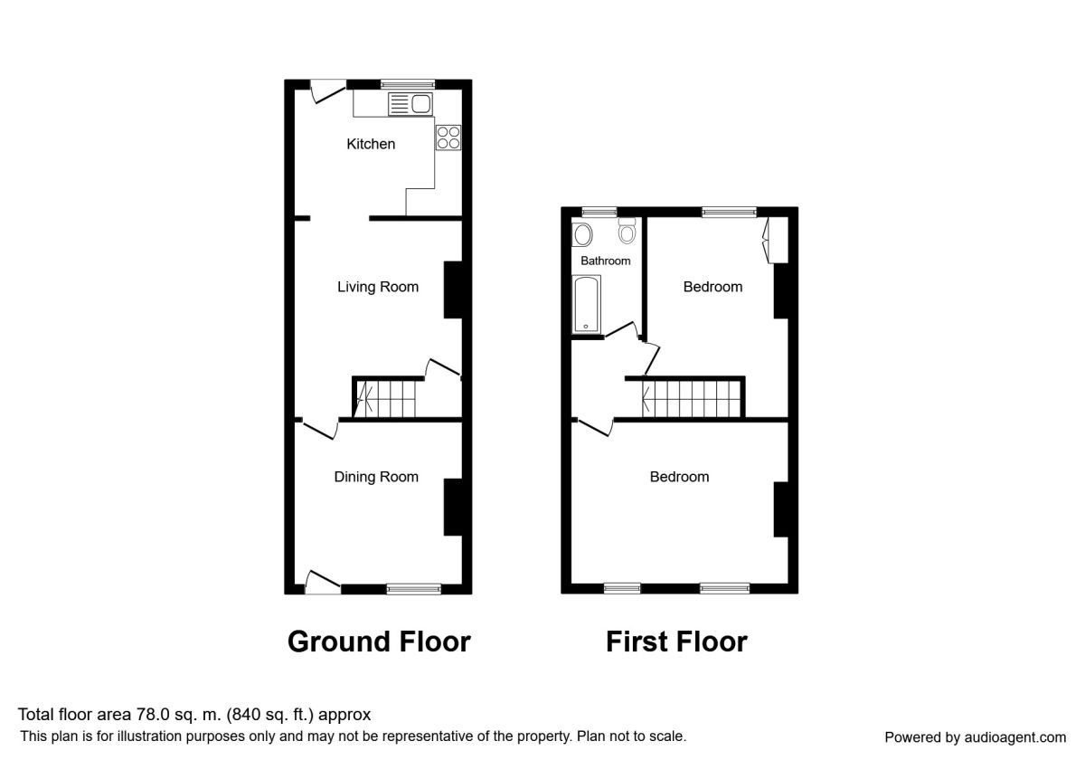 A mid terrace home that is extremely well presented. Comprising of a spacious lounge with feature fireplace, whilst the rear opens up into an impressive open plan kitchen/dining room. Stairs then rise from the rear reception to the first floor landing which in turn offers access to both double bedrooms, being of a good size. There is a white three piece bathroom suite being complete with a panelled bath, WC and hand basin. Externally the home offers a rear garden which is block paved with steps rising to mostly laid to lawn providing the ideal outside space.