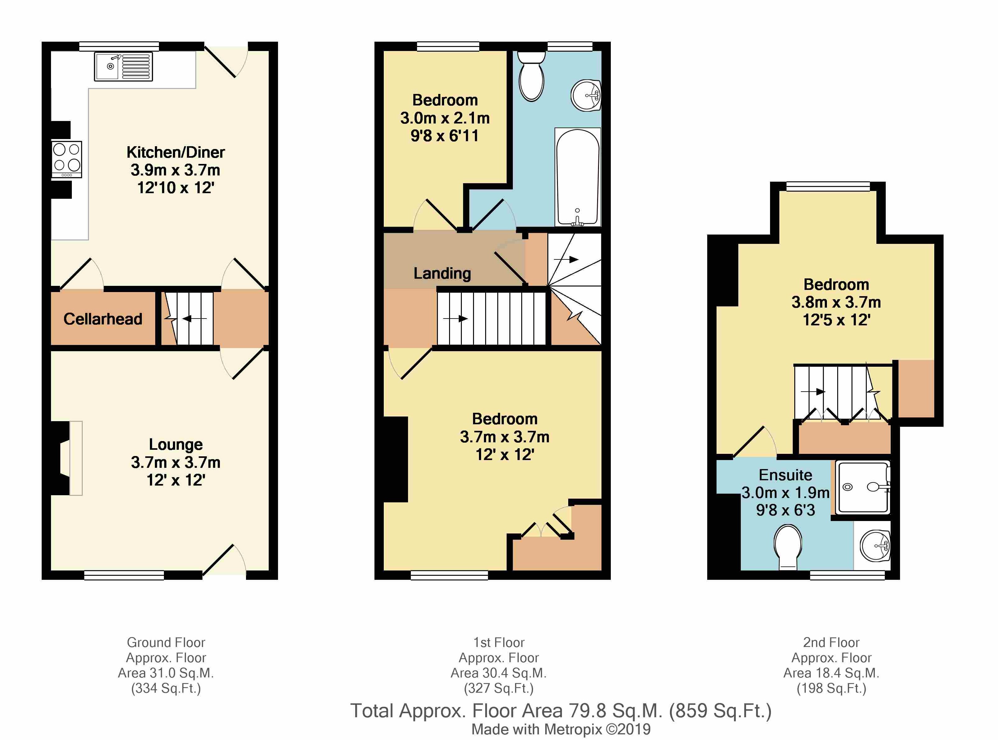 A stunning three bedroom property that has been lovingly refurbished to a high standard, with generous lounge having feature fireplace. Large dining kitchen with built integrated oven and hob. Access to the cellar. The first floor offers a good double bedroom with built in wardrobes. Modern family bathroom with suite in white, and a further bedroom. Stairs lead up to the newly converted loft space, now a double bedroom with built in wardrobes over the stairs, and an ensuite shower room. Externally there is a gravelled front and to the rear is a lawned garden with shed and decked area behind. Available from 10th May 2019 on an unfurnished basis. No pets, .