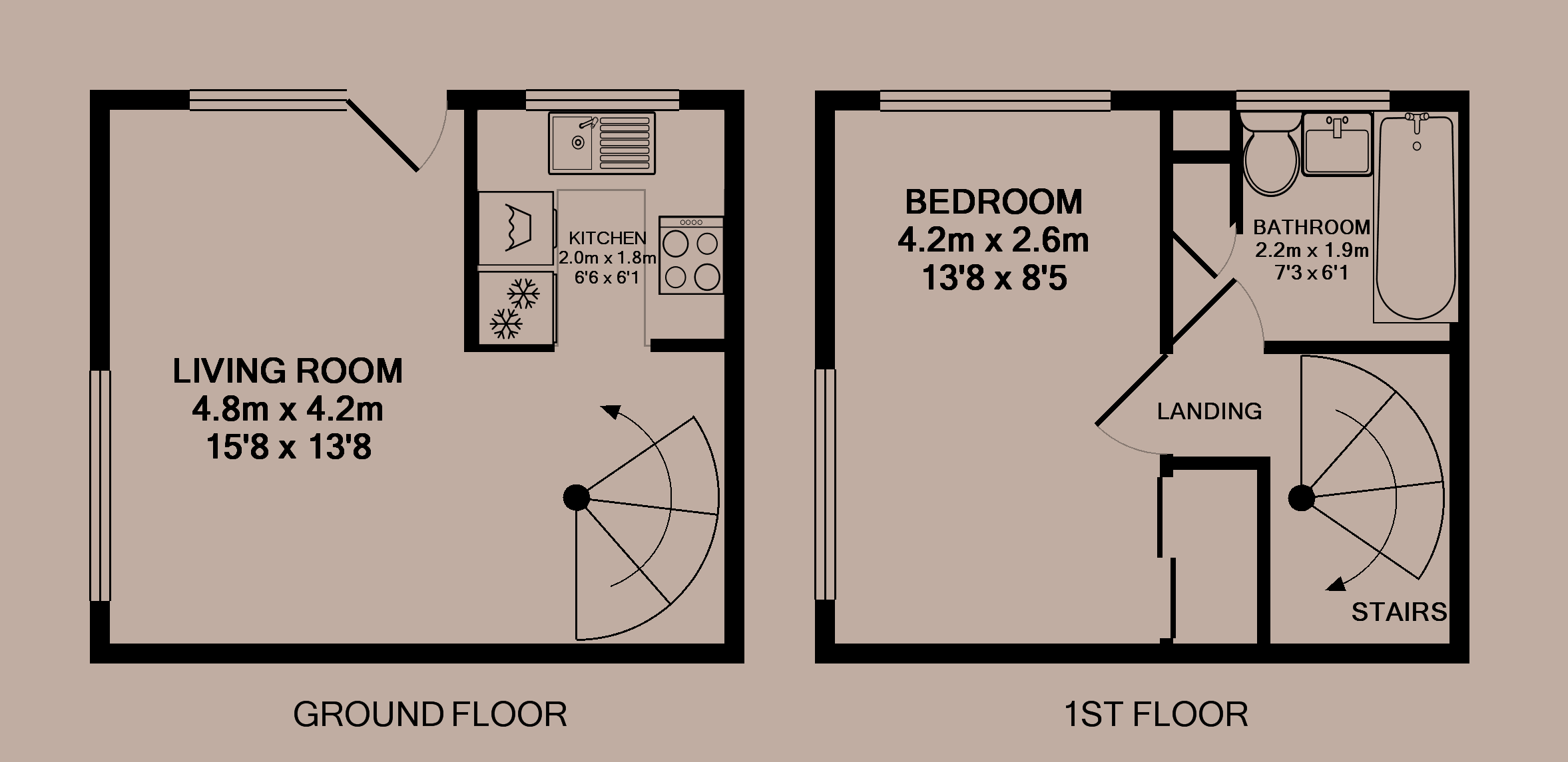 Living area 4.76m (15'7) x 4.16m (13'8)