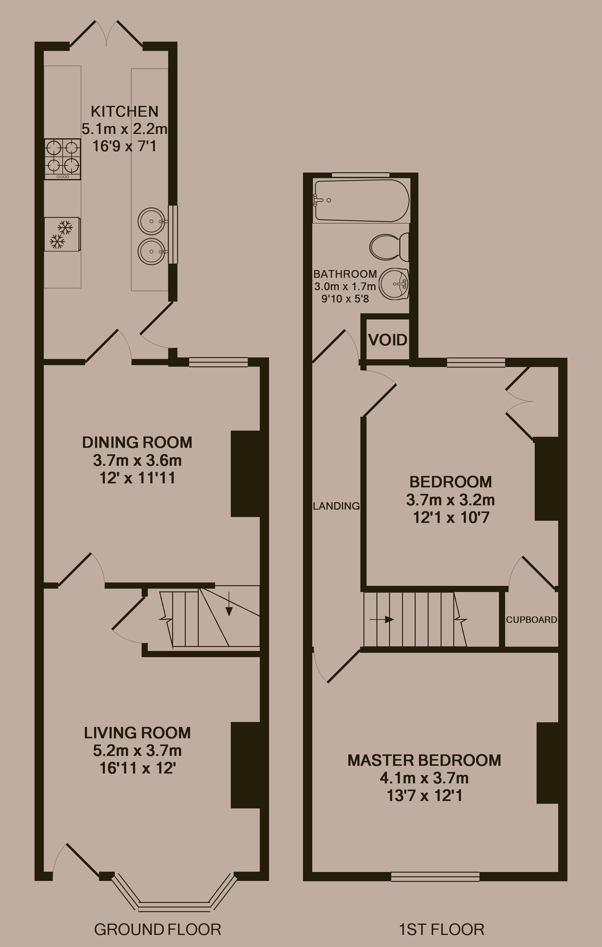 Master bedroom 4.13m (13'7) x 3.67m (12'0)