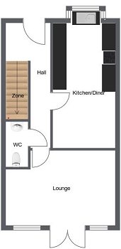 The Entrance Hall has the stairs to the first floor, doorways through to the lounge, kitchen / diner and the cloakroom which has a white WC and wash hand basin.