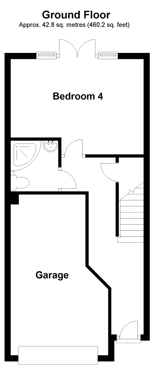 • Bedroom 4 14'6 (4.42m) x 10'0 (3.05m) narrowing to 8'7 (2.62m)