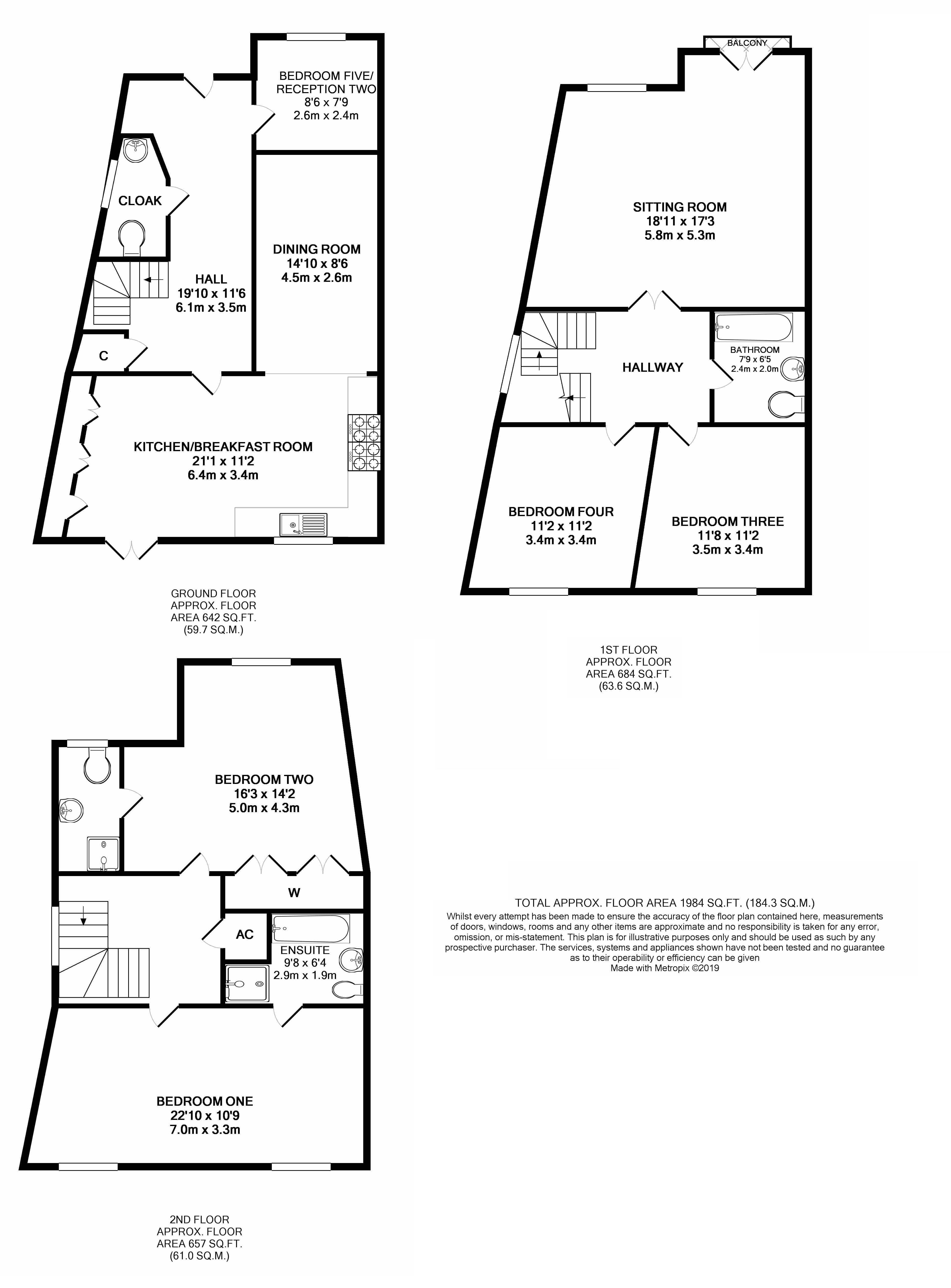 To the ground floor you will find a large spacious hallway with access to bedroom 5 / study, downstairs W/C, good storage facilities and the large kitchen/diner. To the first floor is where the large family lounge is located, family bathroom and two double bedrooms and a spacious hallway. To the top floor you will find two very large double bedrooms both with fitted wardrobes and en-suites.