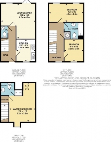 The property is constructed of cavity walling with brick elevations beneath a pitched, tiled, felted and insulated roof provides well planned accommodation briefly comprising to the Ground Floor; Entrance Hall, Cloakroom, L Shaped Lounge/Diner and modern fitted Kitchen with integrated cooker & hob, whilst to the First Floor there are Two well proportioned Bedrooms and Bathroom with modern white suite, to the Second Floor; large Master Bedroom with Dressing Area and En-Suite Shower Room. The property benefits from gas fired central heating, UPVC double glazing together with all floor coverings included in the asking price. Outside there are enclosed front and rear gardens with garage and driveway providing off road parking to the rear. To conclude it makes an ideal landlord/investment buyers property or indeed young family home and as such early internal inspection is thoroughly recommended to avoid disappointment.